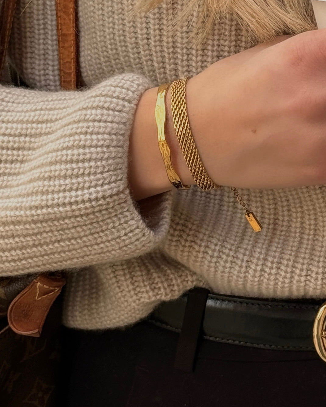 Vores Mesh Bracelet er fremstillet i vandfast stål – det betyder, at du trygt kan beholde det på, når du går i bad, vasker hænder eller træner. Armbåndets fine, flettede kædestruktur giver et elegant og sofistikeret udtryk, der fanger lyset på smukkeste vis. Brug det alene for et klassisk look eller kombiner det med andre armbånd for en mere personlig stil. Perfekt til hverdagsbrug – uden at du skal bekymre dig om slid.