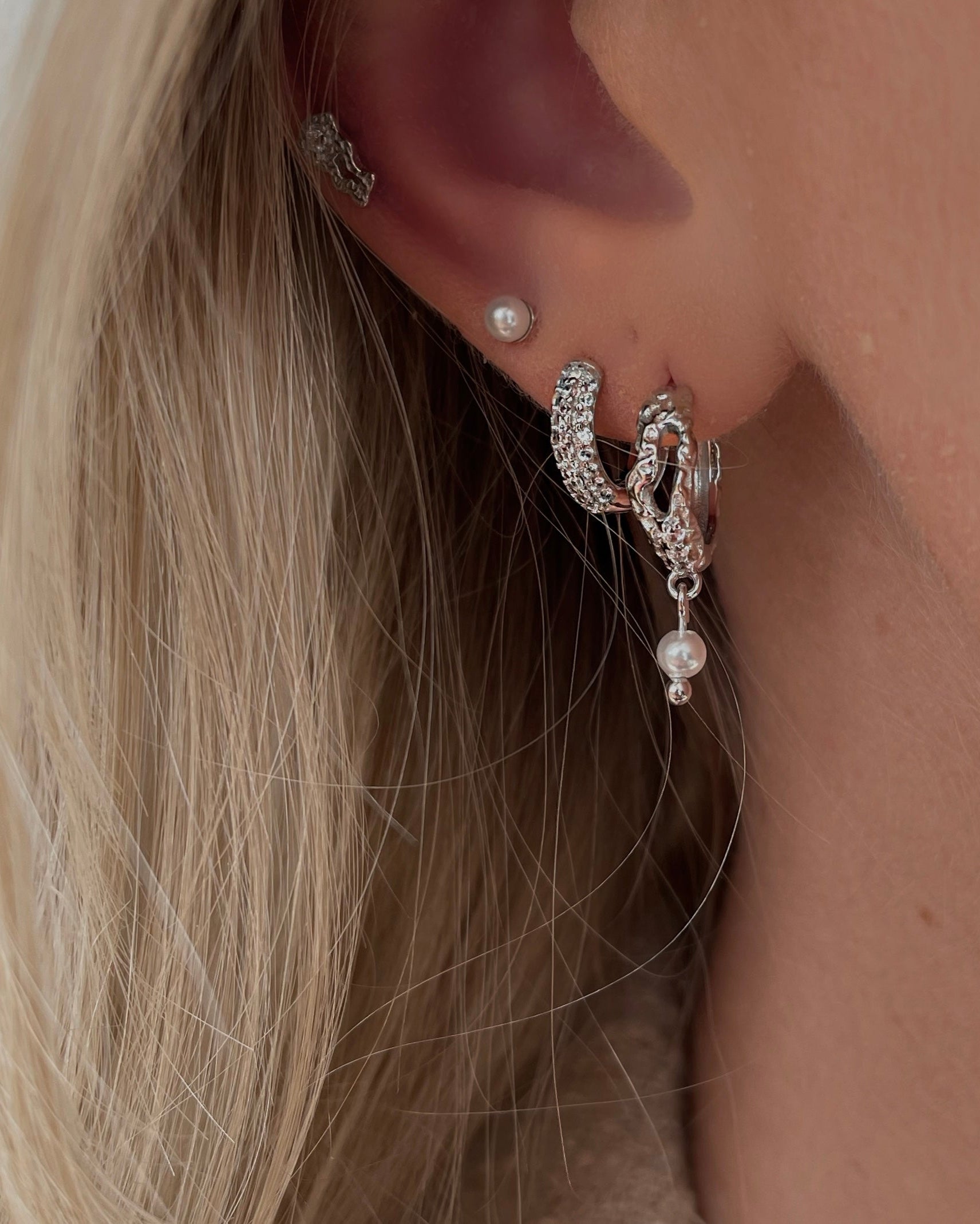Tasi Earrings er en smuk elegant klik-kreol, som gør sig smuk alene eller sammen med andre øreringe. Øreringen har en banket overflade og har et par små klare kubiske zirkoner, samt en lille perle. Tasi Earrings er nemme at tage både af og på, da den bare skal klikkes sammen om øreflippen. En perfekt hverdagsørering. Tasi Earrings er en del af Reef Kollektionen, som er inspireret af det smukke koralrev.