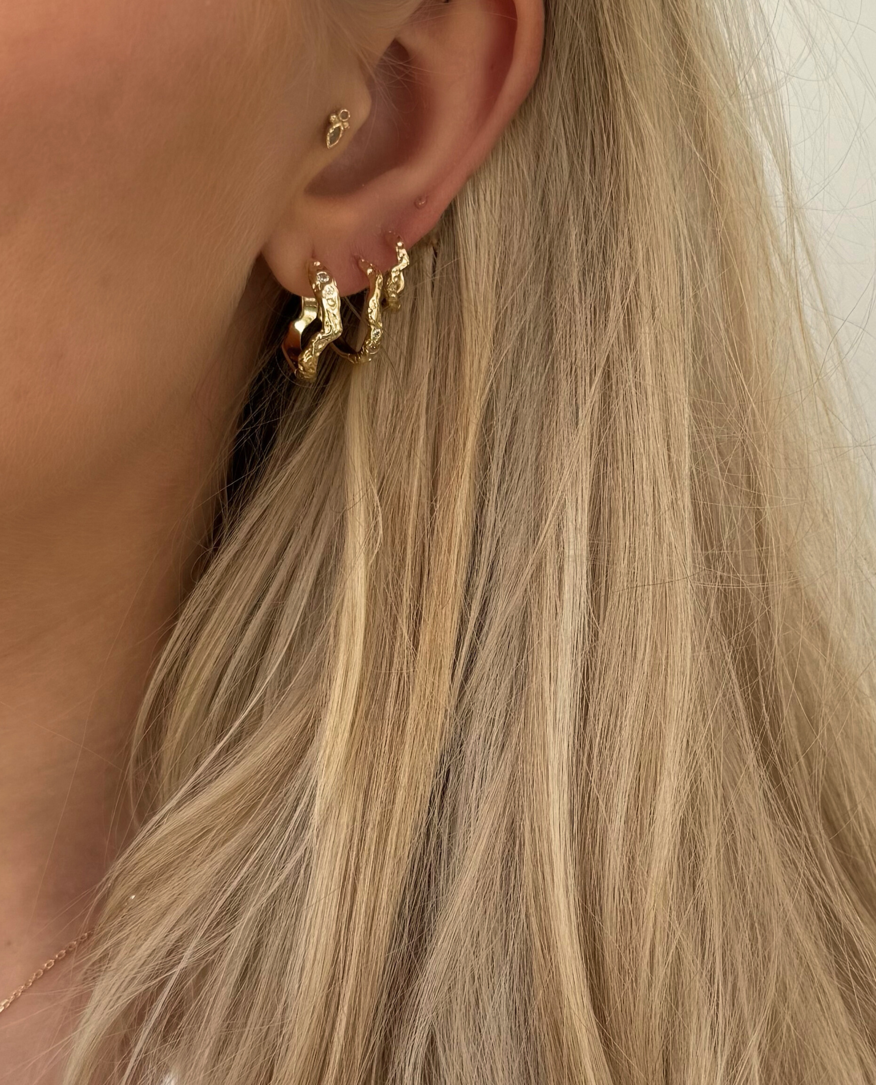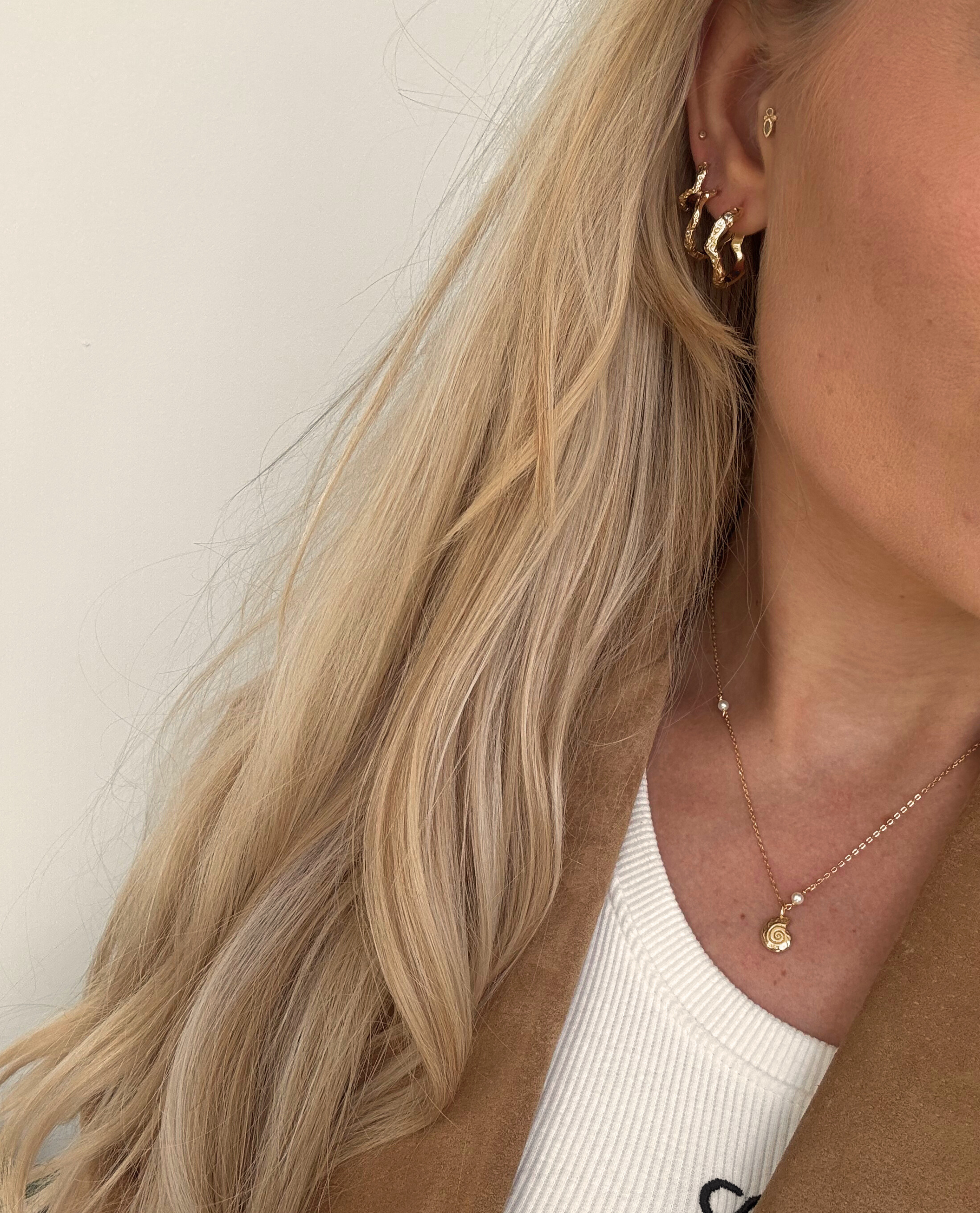 Øreringene er en del af Coastal Dreams Kollektionen, der er en hyldest til kystens vilde og uforudsigelige skønhed – hvor bølger møder klipper, og sand formes af vinden. Kollektionen fanger den rå elegance i havets bevægelser og de skatte, tidevandet efterlader.