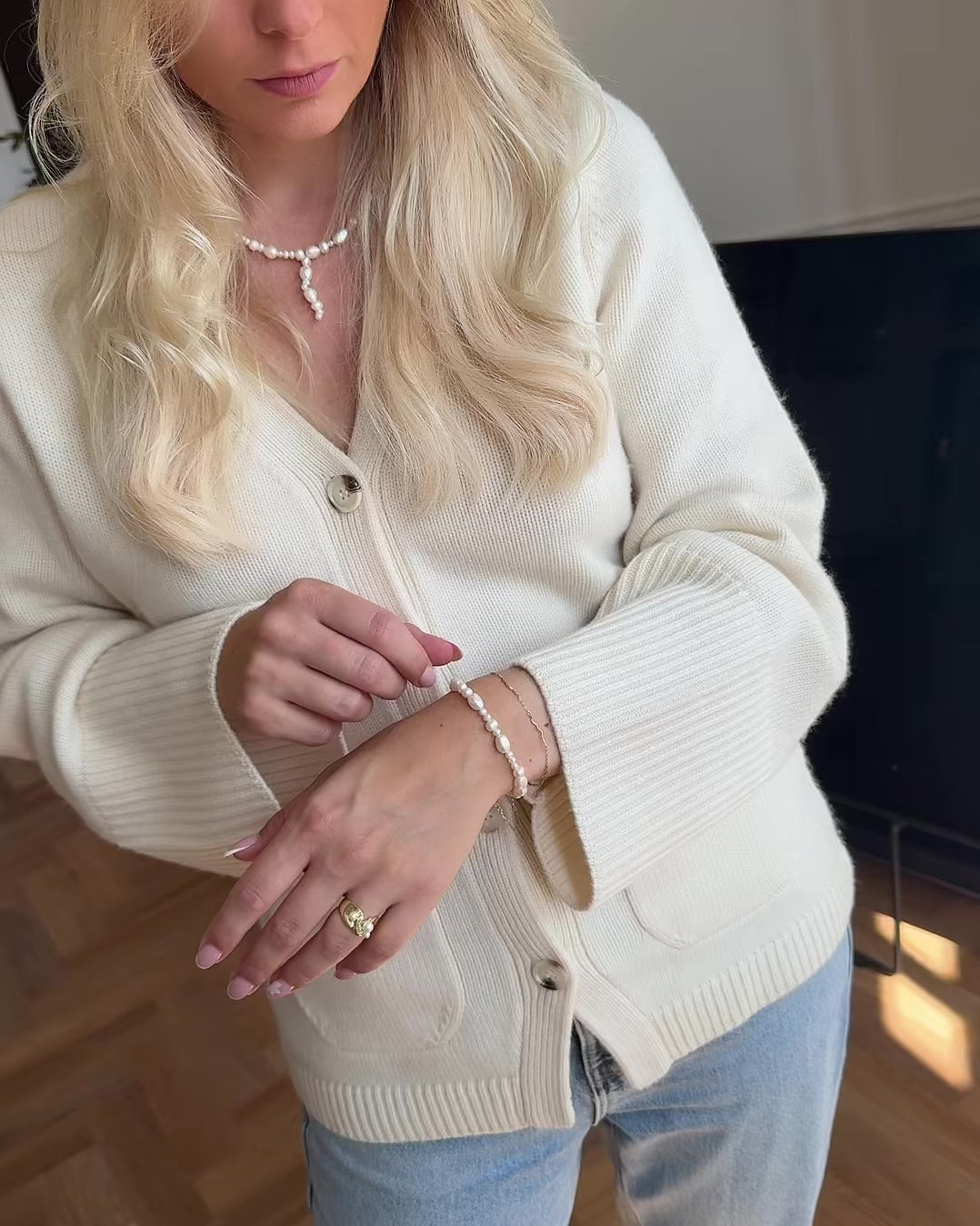 Cordelia Bracelet har et naturligt og legende udtryk med perler i forskellige former og størrelser. Hver perle er unik og tilfører armbåndet en organisk elegance, der passer perfekt ind i Siren kollektionens havinspirerede univers.