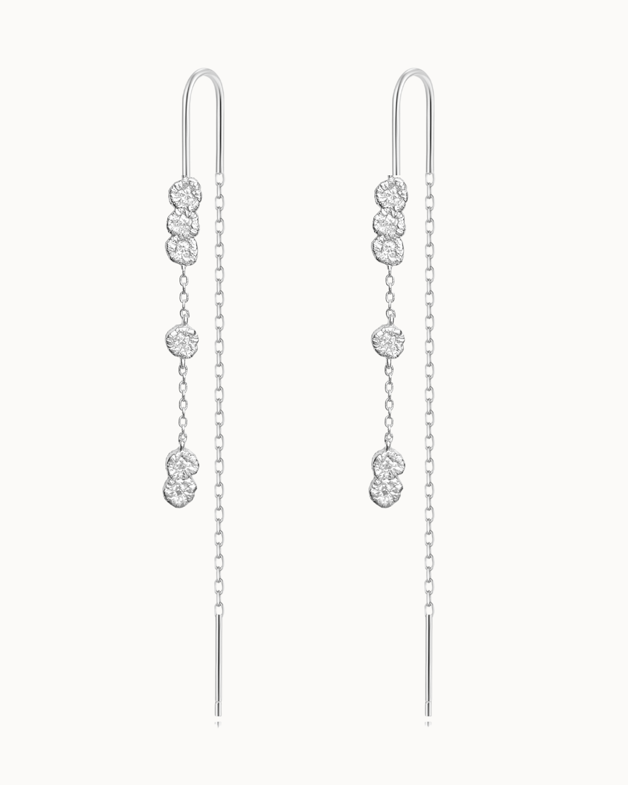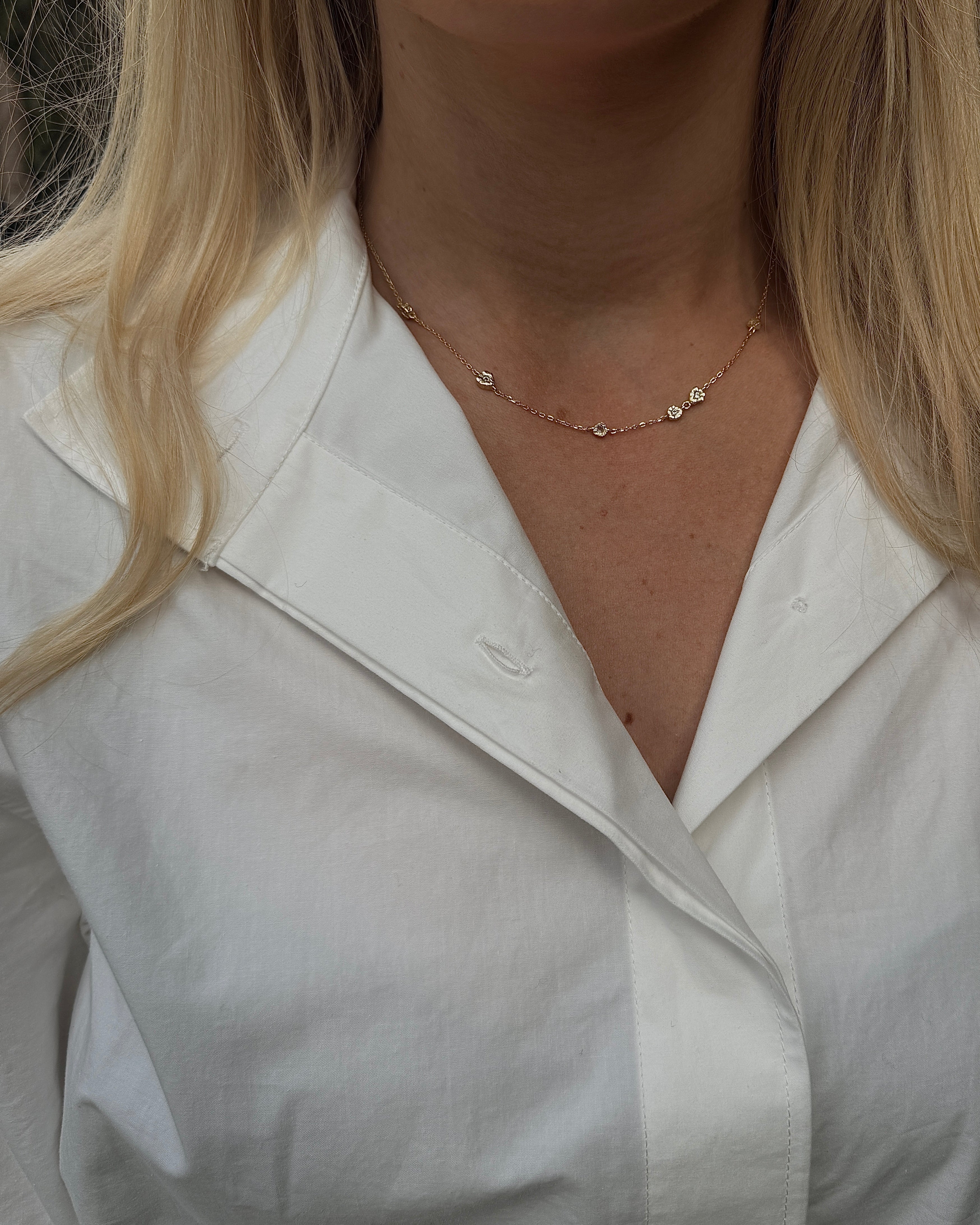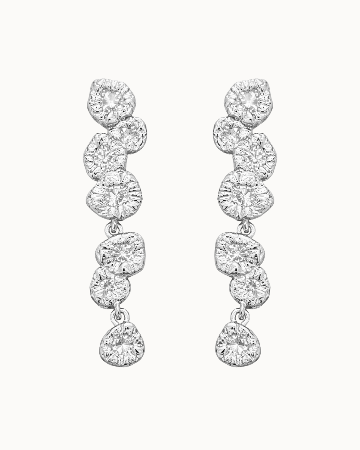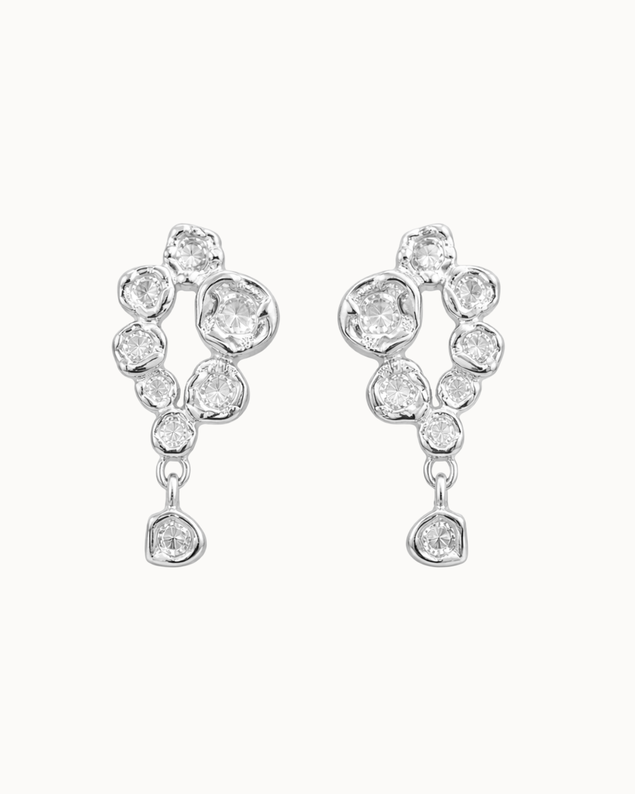 Hver form bærer præg af levende tekstur og uperfekt perfektion. Stenene er sat i bagfra, så de nærmest smelter ind i metallet og bliver ét med designet. Det giver et flydende, næsten drømmende udtryk – som om lyset bryder gennem havets overflade og fanges i smykket.