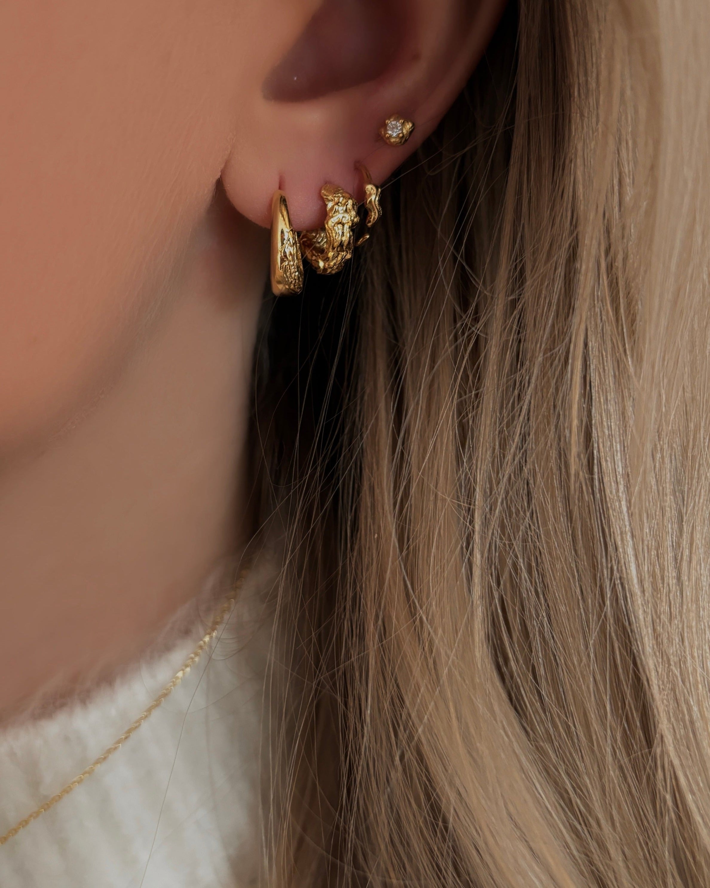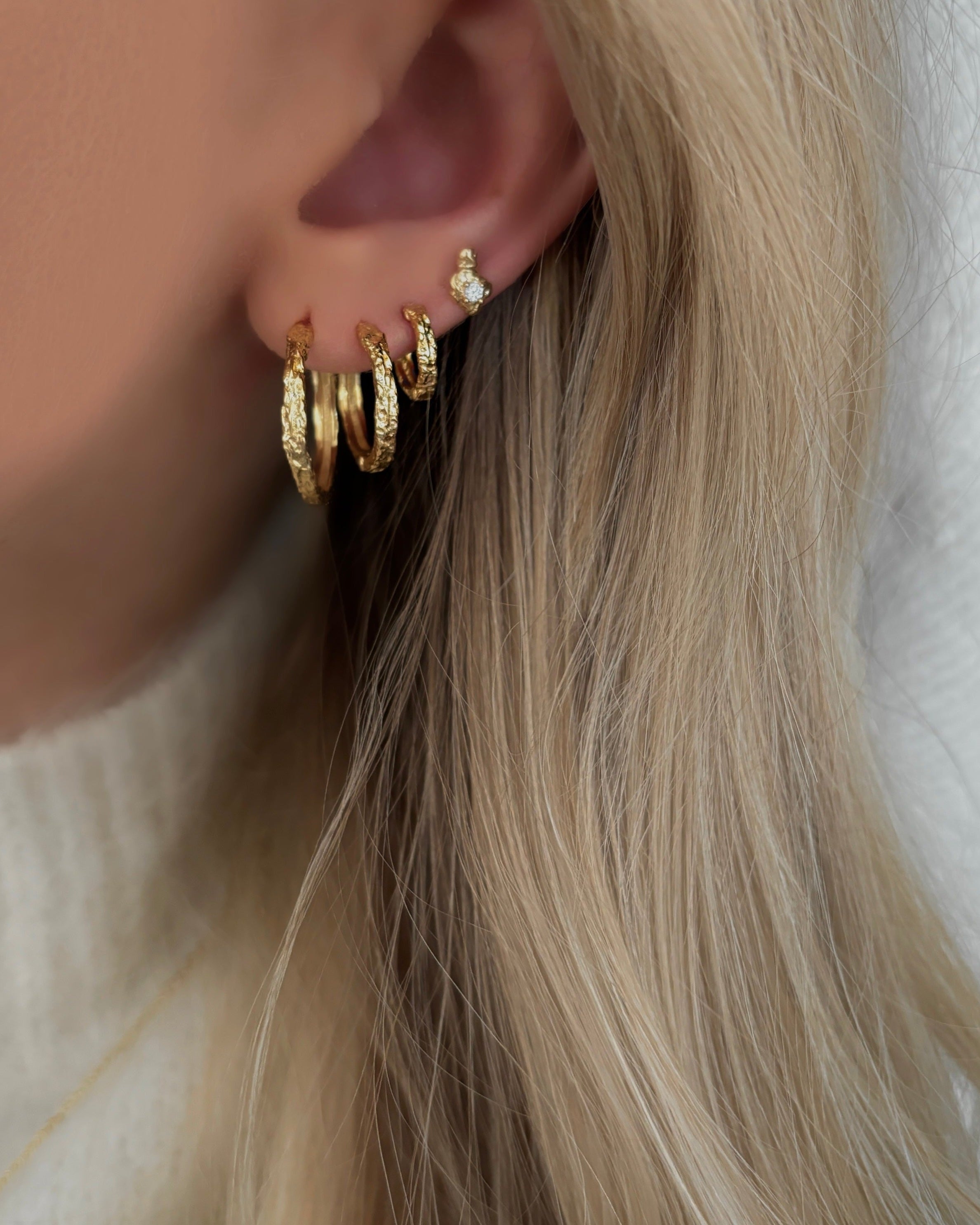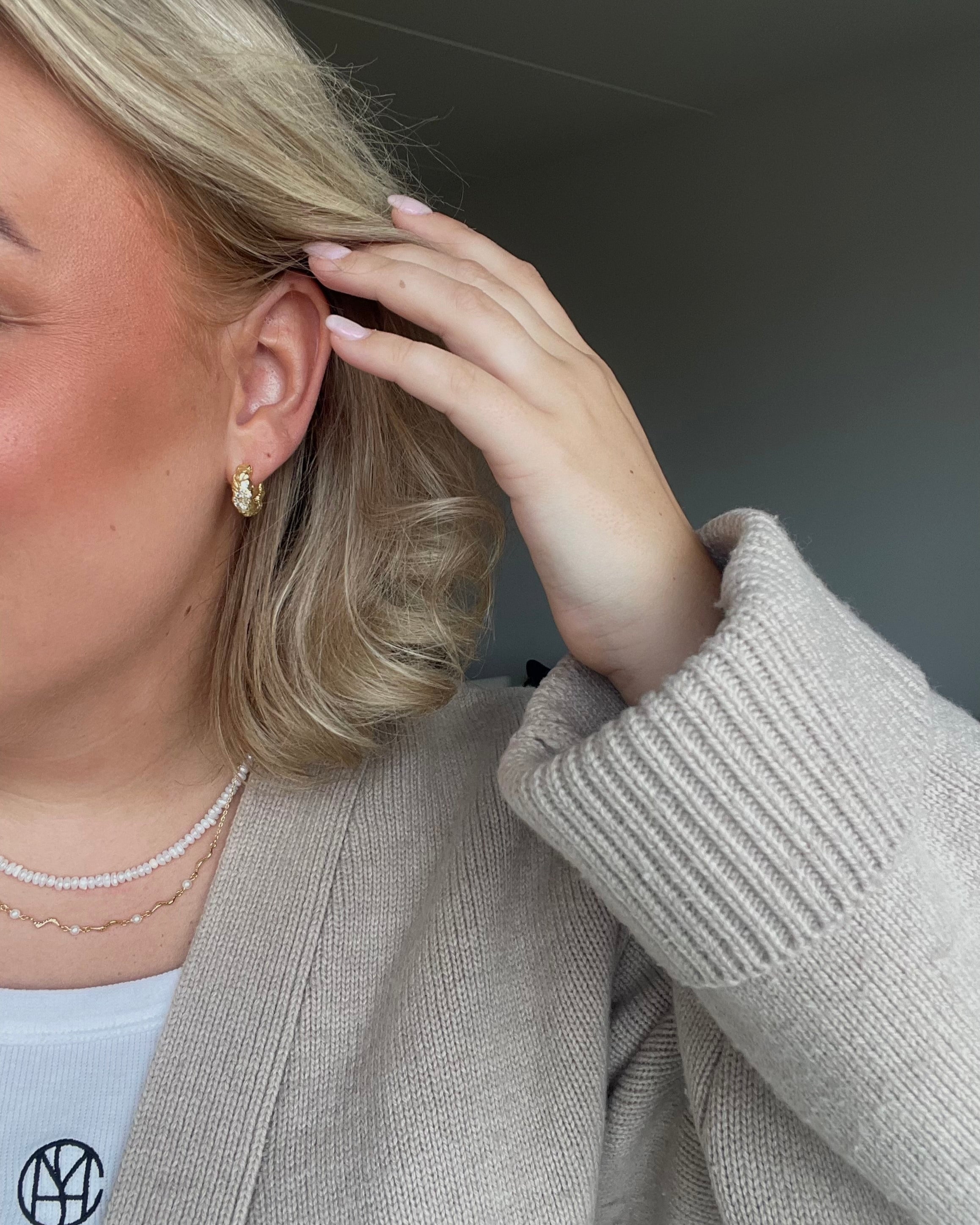 Der Creolentyp, den wir bei Nava Copenhagen häufig verwenden, ist ein Click-Creolentyp – auch Huggie genannt. Ein Click-Hoop ist ein Ohrring mit einem speziellen Verschlussmechanismus. Dieser rastet beim Einsetzen ins Ohr ein und verhindert so, dass der Hoop aus dem Ohr fällt und verloren geht. Click-Hoops gibt es in verschiedenen Größen und Designs, doch gemeinsam ist ihnen der praktische Verschlussmechanismus, der das An- und Ablegen erleichtert und gleichzeitig einen sicheren Halt im Ohr gewährleistet. Click-Hoops sind beliebt, weil sie sowohl praktisch als auch stilvoll sind.
