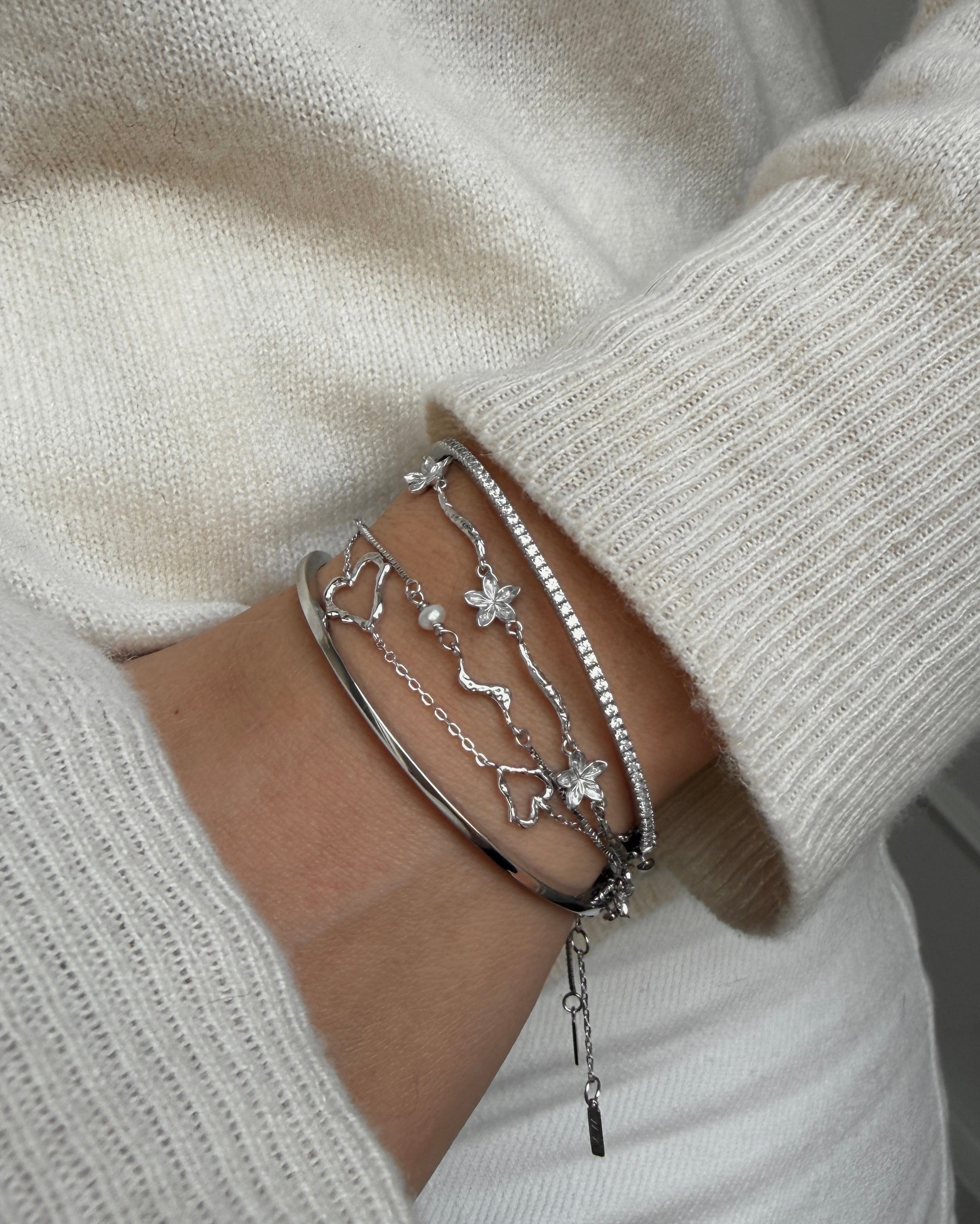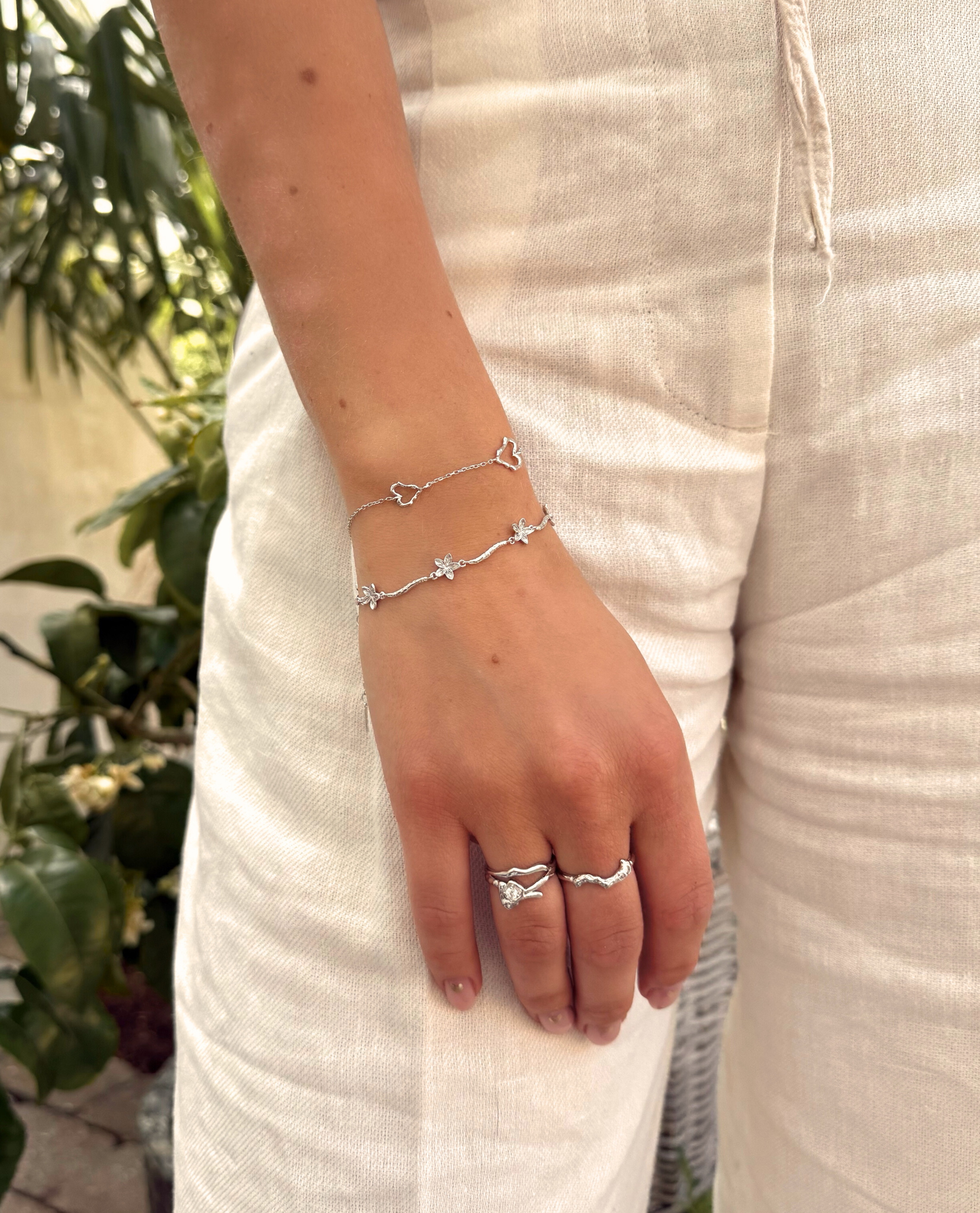 Das Nola Armband ist ein zartes und feminines Armband mit zwei abstrakten Herzen in sanften, wellenförmigen Linien. Die offenen Herzanhänger sind von den natürlichen Formen der Küste inspiriert und verleihen dem Armband einen leichten und organischen Look. Perfekt allein oder in Kombination mit anderem Schmuck für einen persönlichen Look.