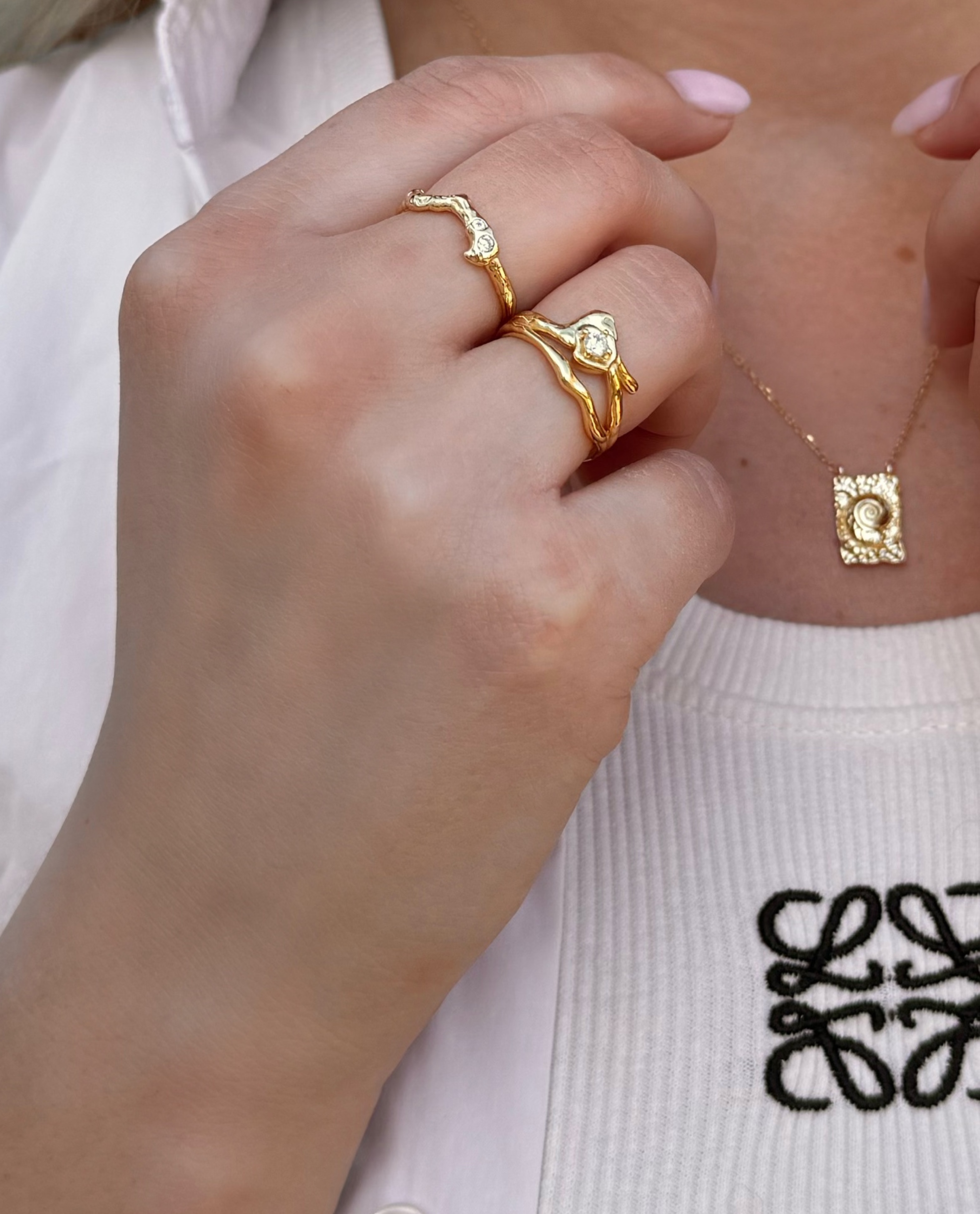 The ring is part of the Coastal Dreams Collection, which celebrates the wild and unpredictable beauty of the coast – where waves meet rocks and sand is shaped by the wind. The collection captures the raw elegance of the ocean’s movements and the treasures left behind by the tide.