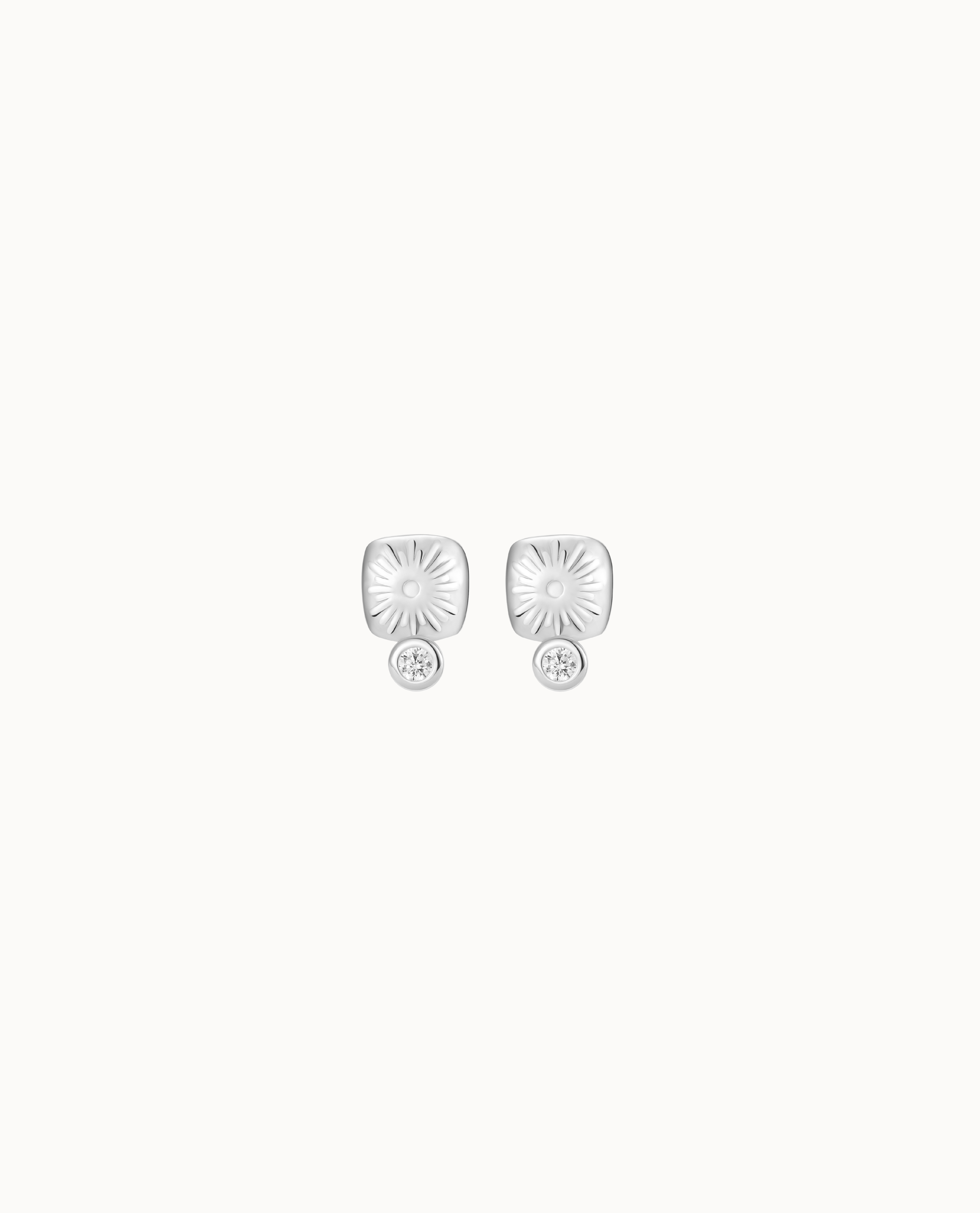 Ash Petite Studs have a refined design with a sun-inspired detail and a sparkling zircon at the bottom. The small studs are perfect for both everyday wear and special occasions.