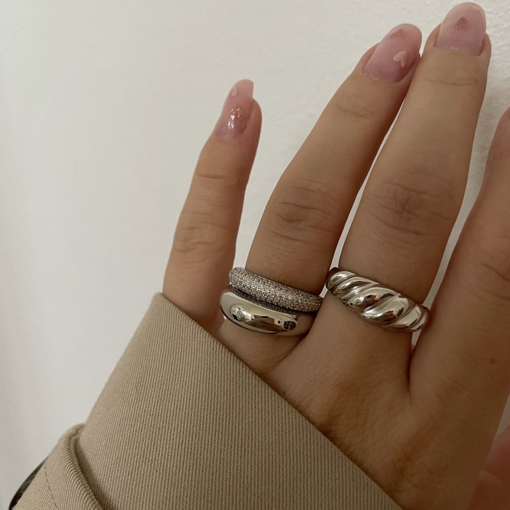 Ease Ring is a simple and classic style that has a dome shape. The ring can be very easily combined with other rings to create a stacked look, but can also be easily used alone.