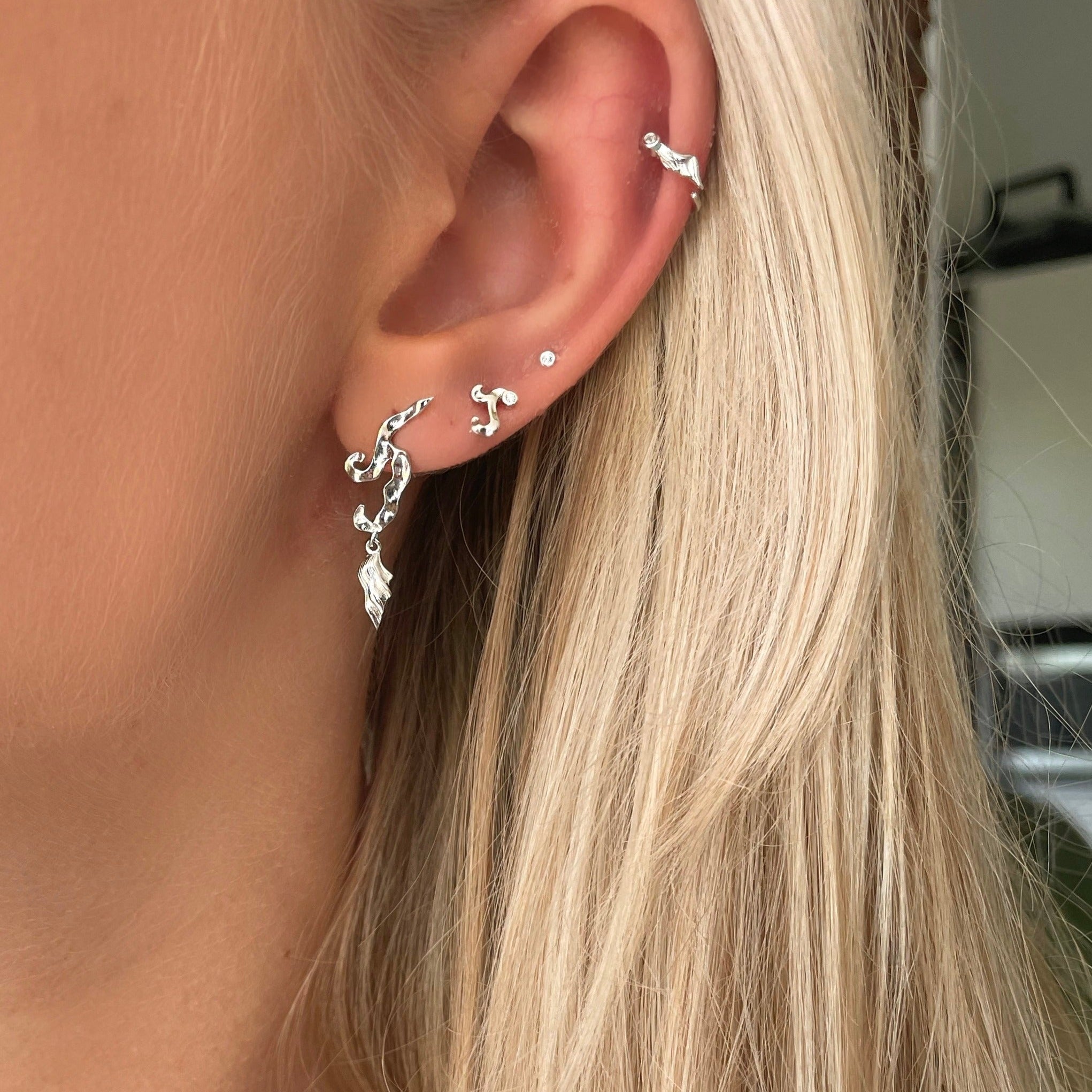 Our fine Bekko Petite Stud is a whimsical little stud that beautifully shapes like a wave and has one single cubic zirconia. Bekko Petite Studs are part of our Koi collection, which is inspired by the beautiful and colorful koi carp.