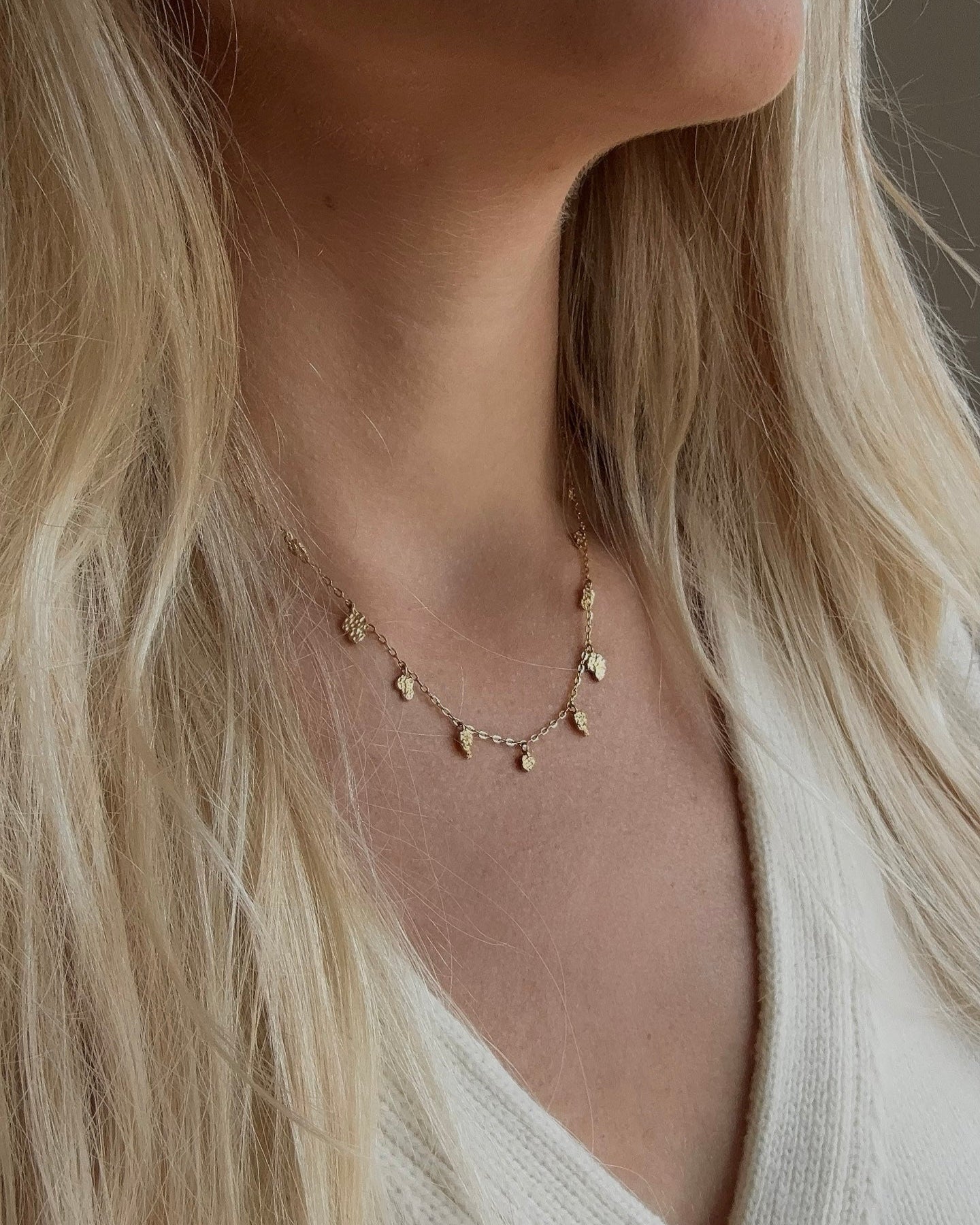 Here you will find a large selection of necklaces that include both pendants and chains. Our necklaces are designed with playful details and contain both pearls and cubic zirconias that add an extra touch of elegance and shine. All jewelery is made in 925 sterling silver with 18K gold plating, which gives them a timeless and durable quality. One of the best things about our necklaces is that they are easy to style together to create a unique look that suits any occasion. Whether you want a simple and elegant style or a more eye-catching and dramatic effect, we have the perfect necklace for you.