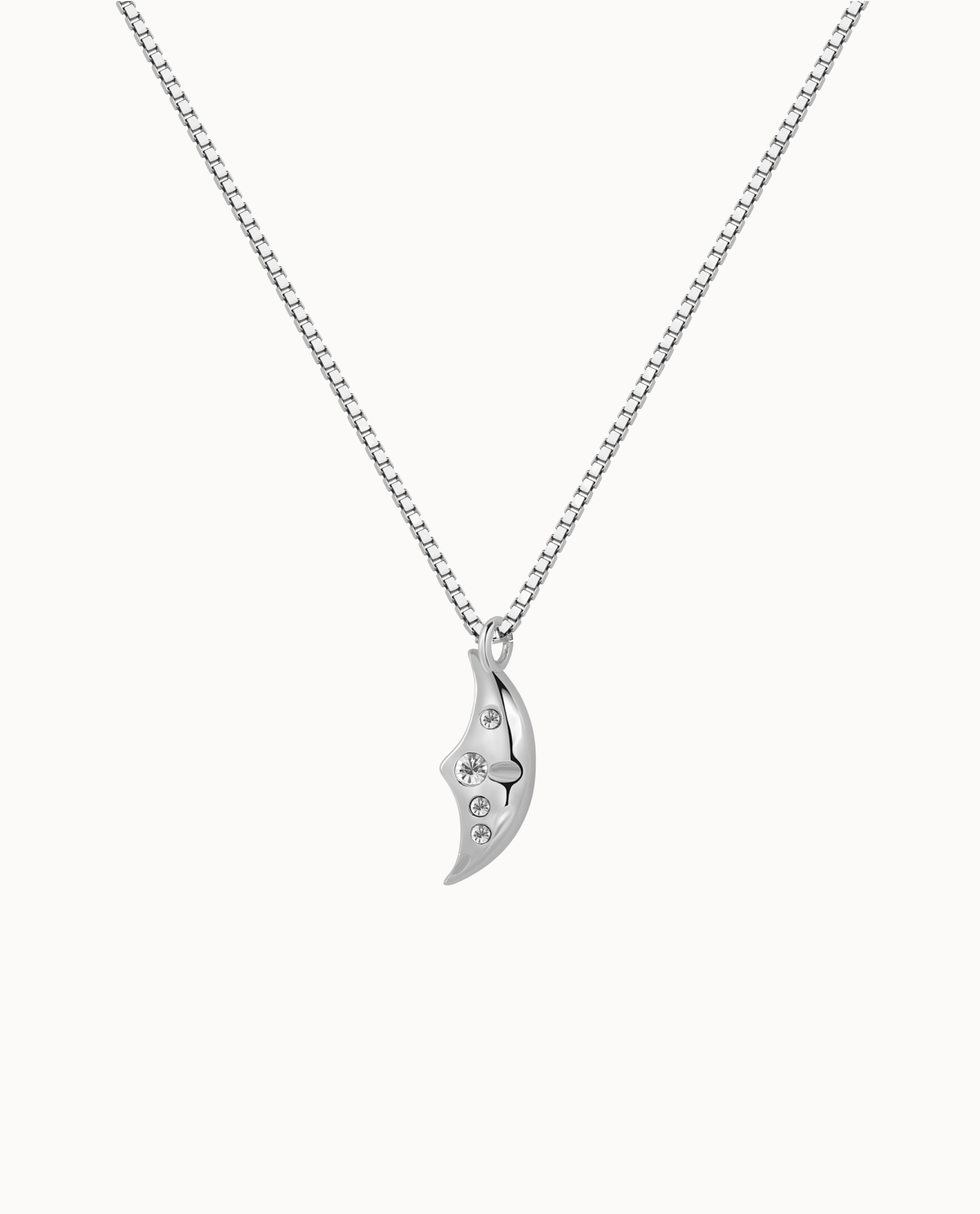 Hala Necklace is an enchanting necklace with a beautiful moon pendant. The moon has four small cubic zirconias, which give the necklace a magical look. Hala is part of our Moonshine Collection, which is inspired by the enchanting and magical night sky. It can be easily styled alone, but is also beautiful together with other necklaces.