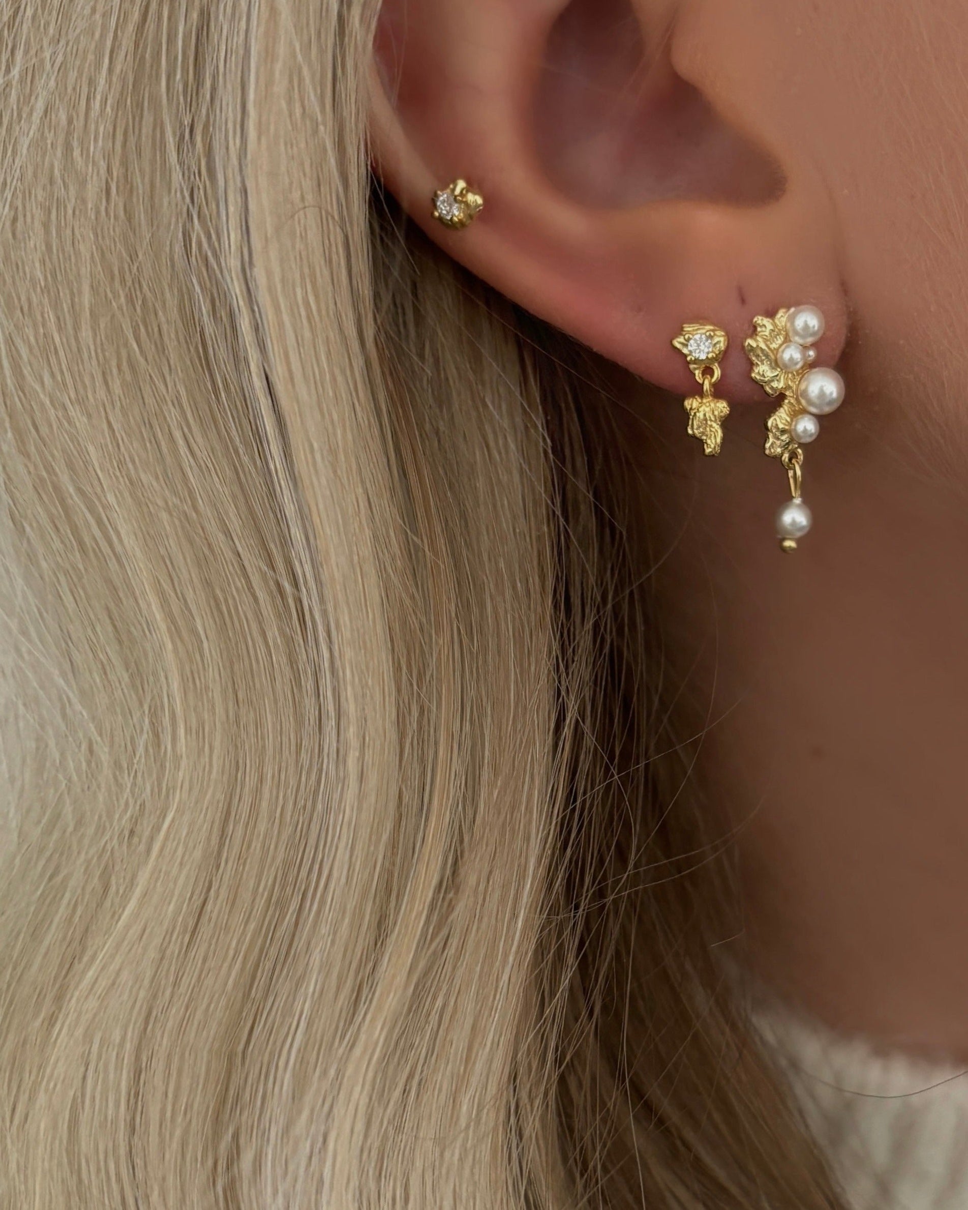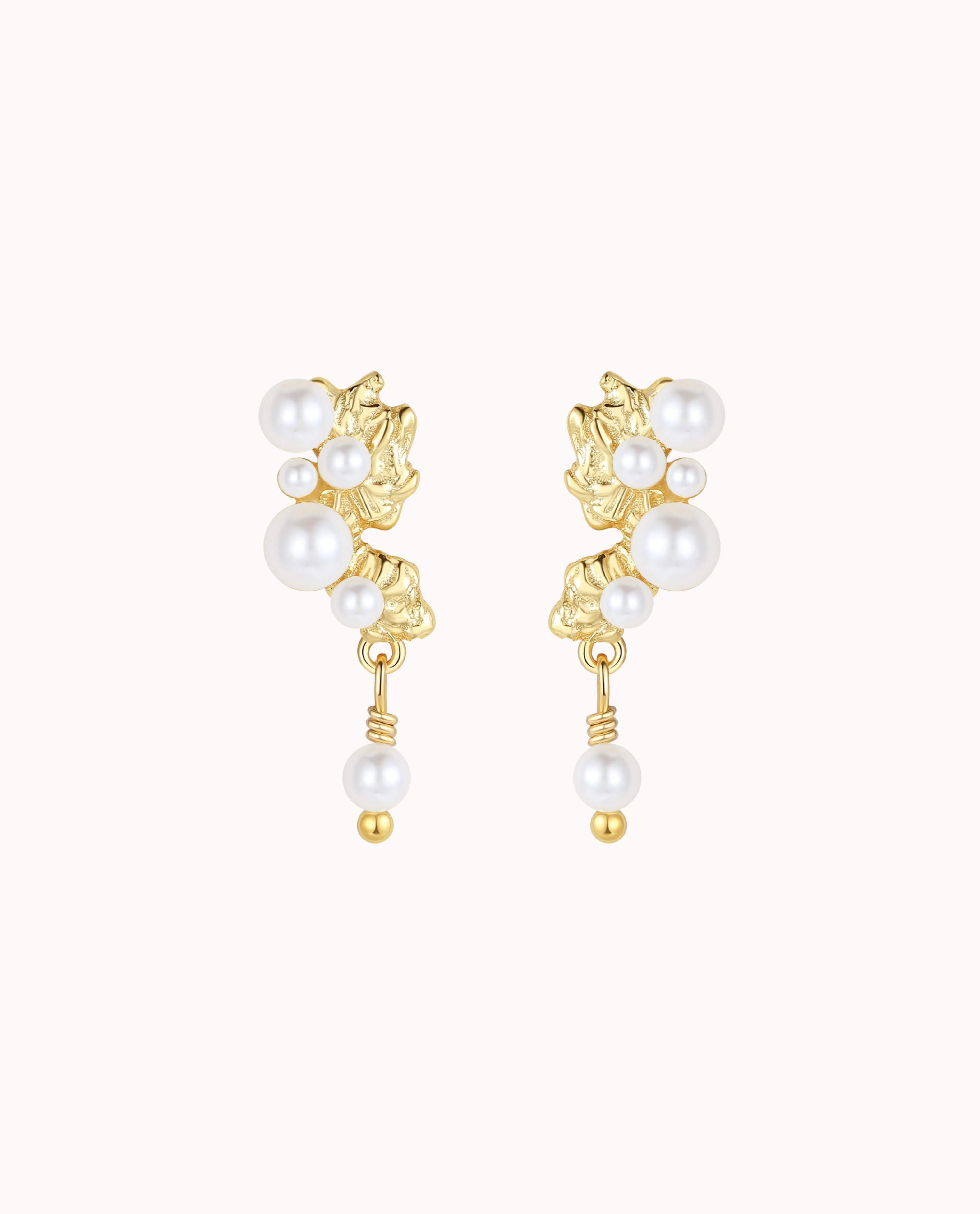 Fei Earrings are a pair of beautiful stud earrings with shell pearls and an organic structure. These earrings stand out with their unique details and elegance. Inspired by the four elements of nature, especially water and earth, they are a remarkable part of the Elements Collection. They are perfect for adding a subtle touch of nature inspiration to any occasion.