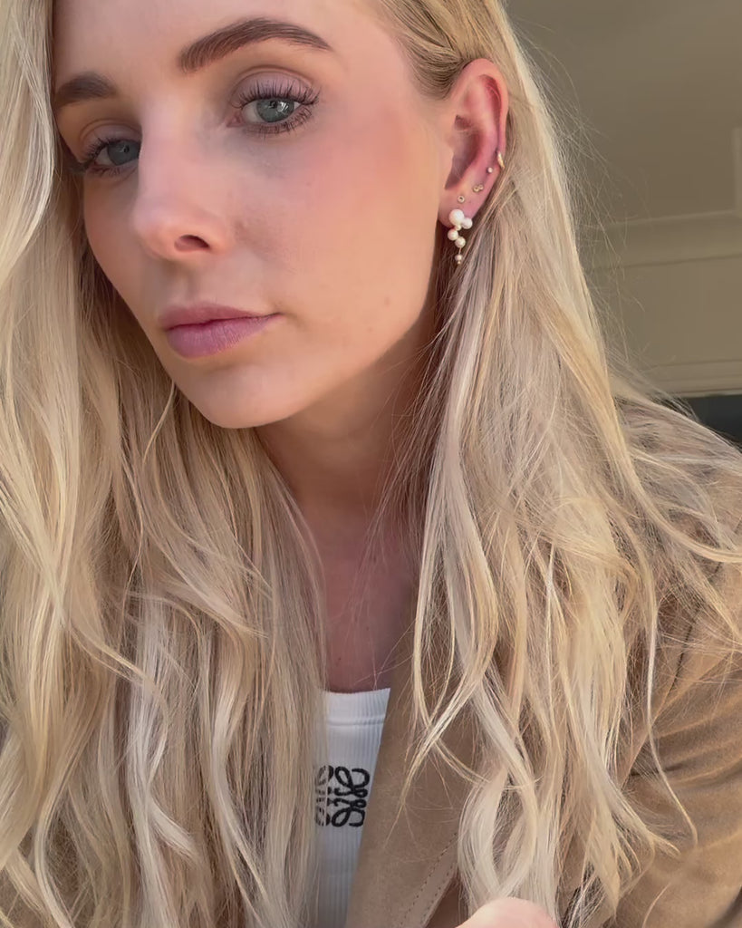 Mehal Earrings are a larger style filled with beautiful clusters of beautiful pearls. The earring is elegant and classic and can easily be used for both everyday life and parties, as it can be styled both up and down. Mehal Earrings are part of our Cloud Collection, which is inspired by the white, puffy and fairy-tale clouds in the sky.