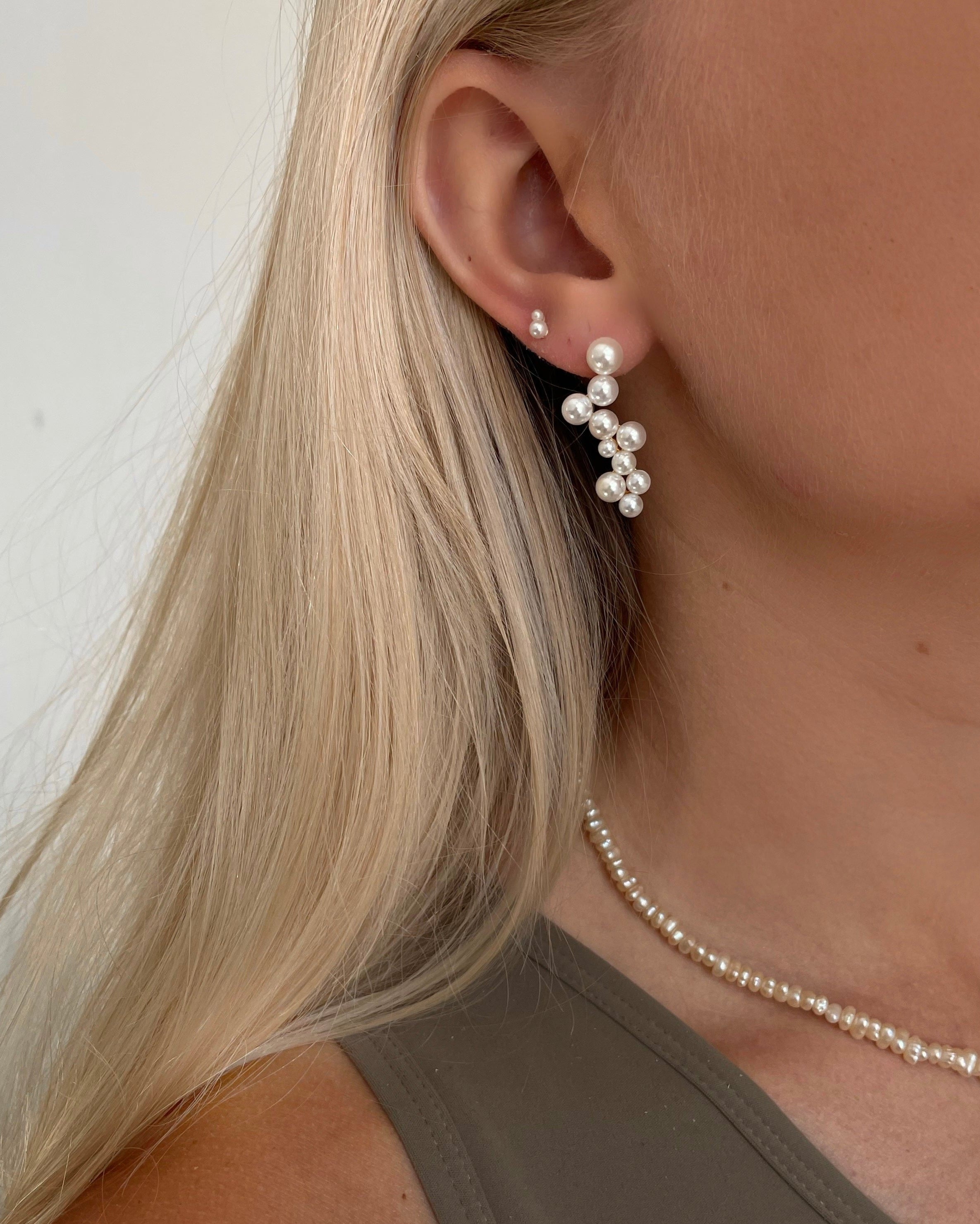 Indra Earrings are a longer ear stud with elegant and beautiful details. The entire earring is a large cluster of pearls, which creates a sophisticated look. Indra Earrings are part of our Cloud Collection, which is inspired by the white, puffy and fairy-tale clouds in the sky.