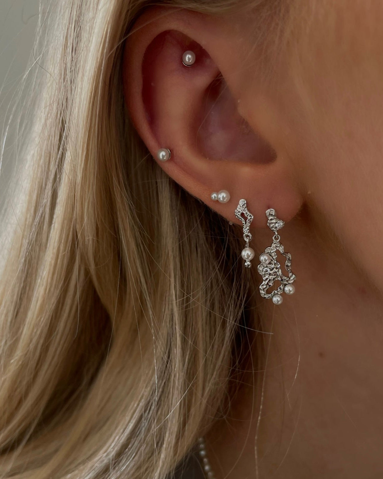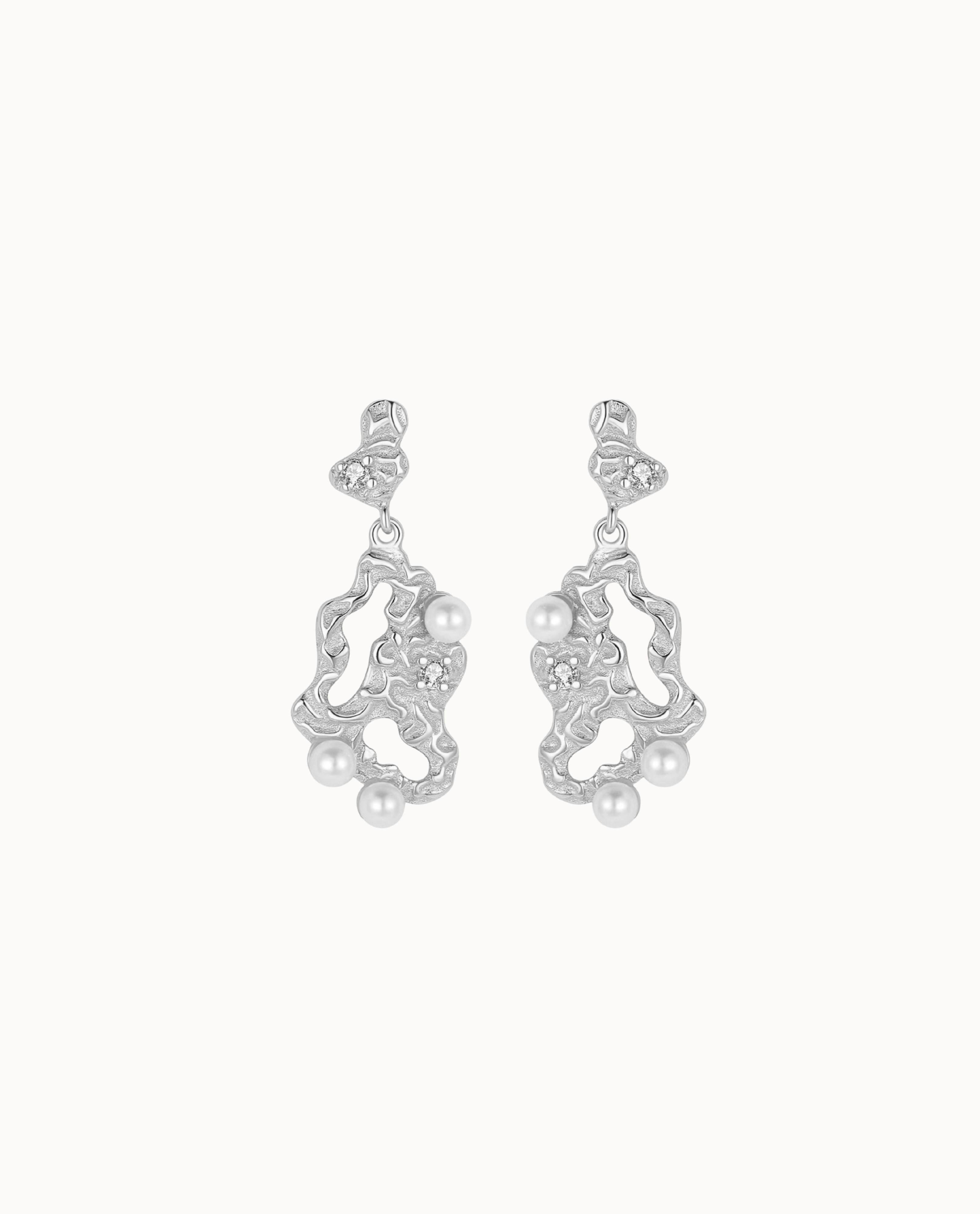 Makara Earring is the perfect accessory for any festive occasion. Makara is a statement earring that, with its hammered structure, pearls and cubic zirconia, gives a great look to that extent. The earring are a slightly larger earring, and are therefore perfect for those who want to stand out. Makara Earrings are part of the Reef Collection, which is inspired by the beautiful coral reef.