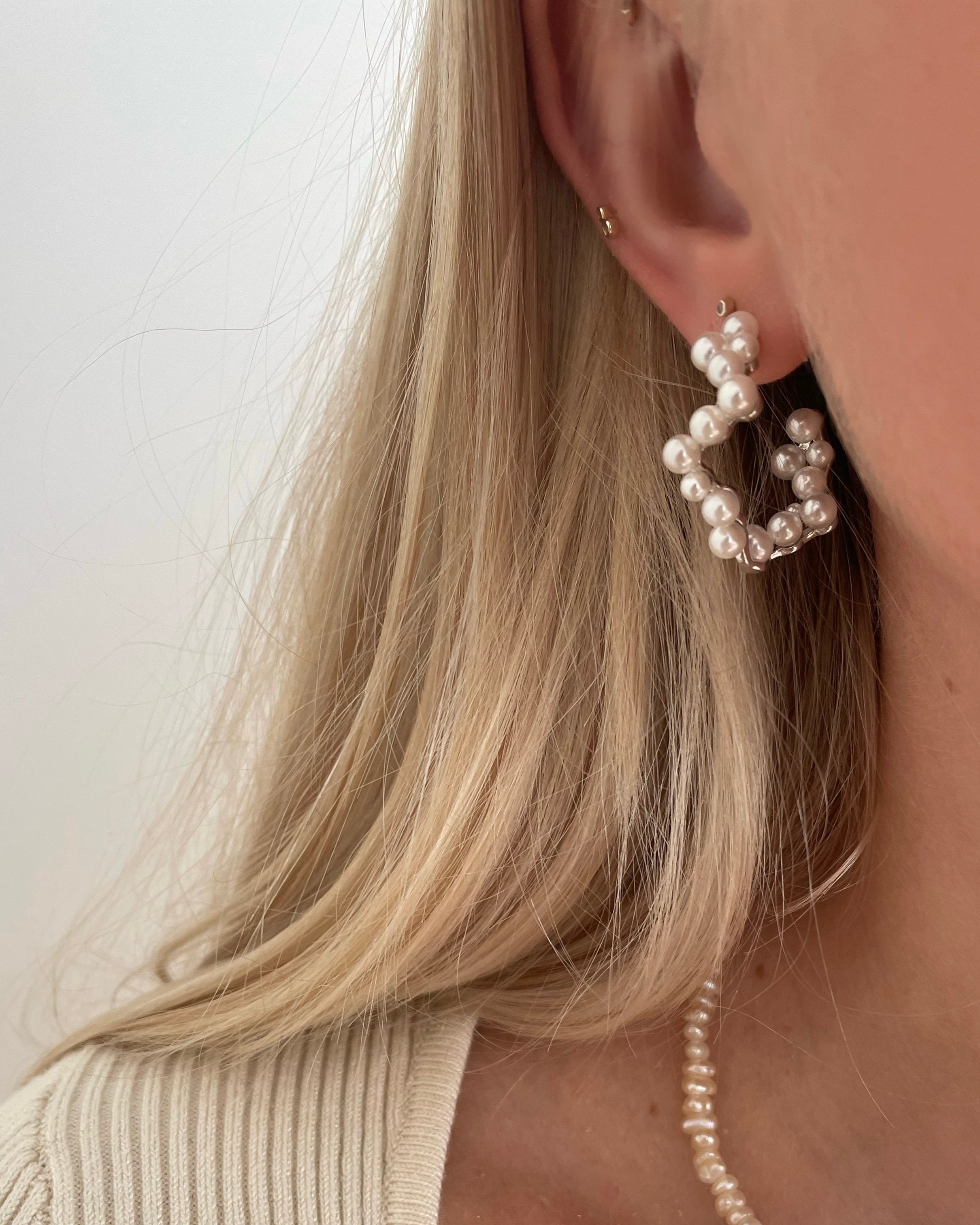 Aella Earrings is an elegant click-creole with a beautiful cluster of pearls as a pendant. The earring is elegant and classic and can easily be used for both everyday life and parties, as it can be styled both up and down. Aella Earrings are part of our Cloud Collection, which is inspired by the white, puffy and fairy-tale clouds in the sky.
