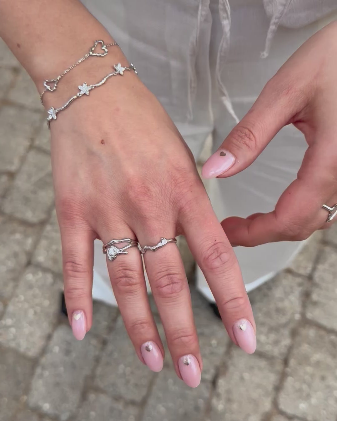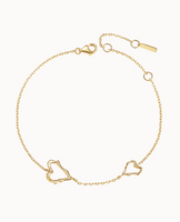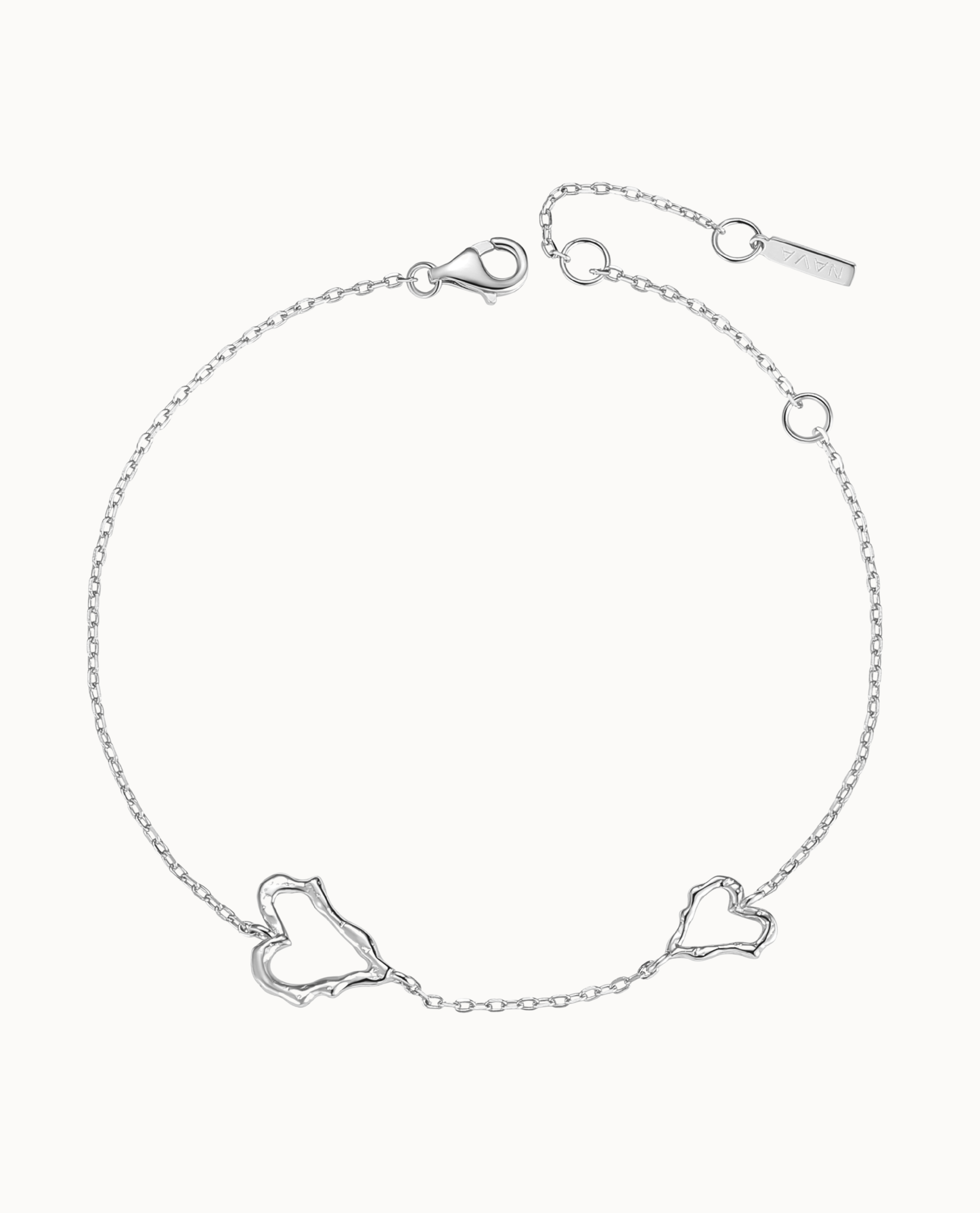 Nola Bracelet is a delicate and feminine bracelet with two abstract hearts shaped in soft, wavy lines. The open heart pendants are inspired by the natural shapes of the coast and give the bracelet a light and organic look. Perfect alone or in combination with other jewelry for a personal look.