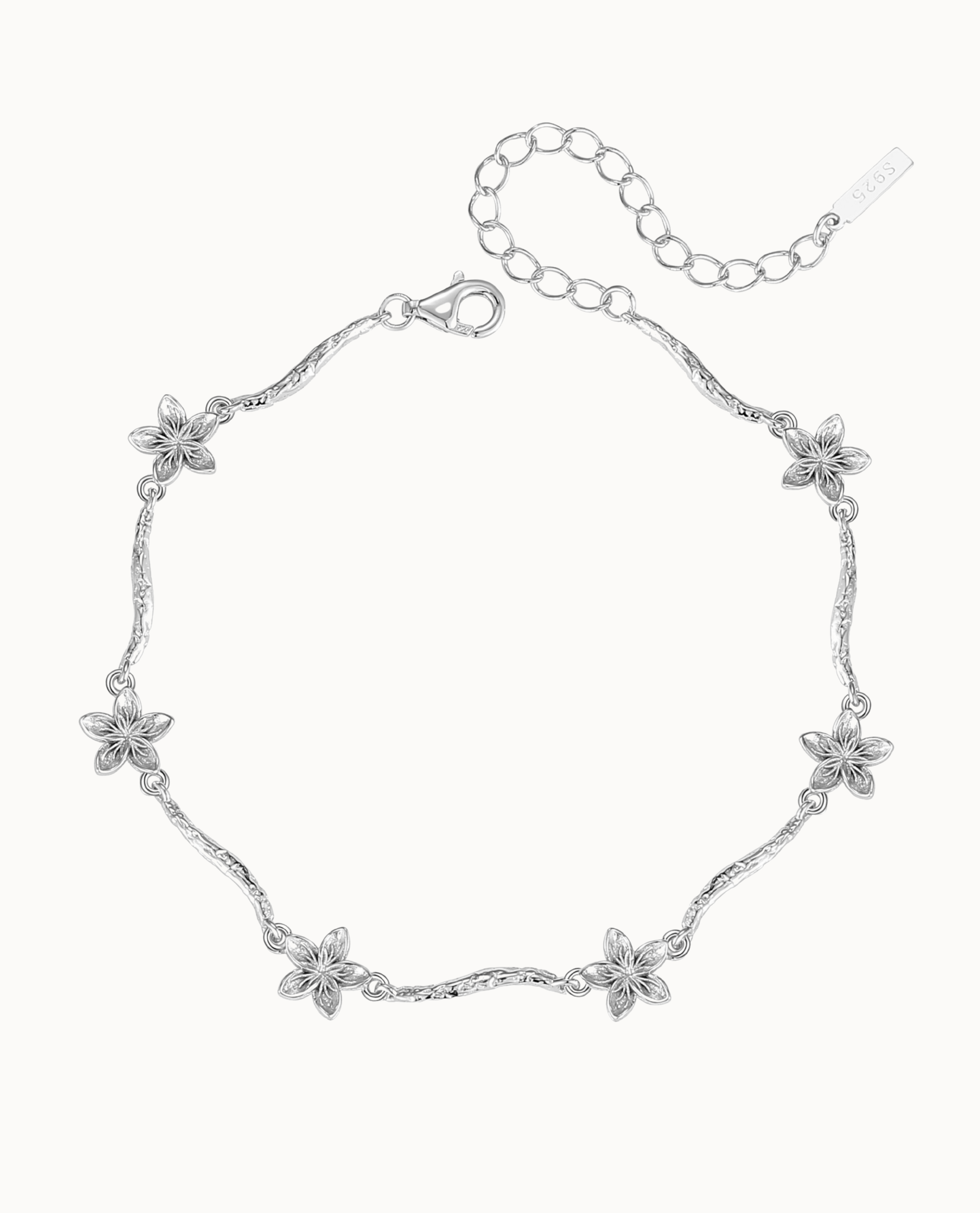 Oahu Bracelet is a delicate bracelet where small flowers and wavy links elegantly wrap around the wrist. The fine details in both flowers and structure give the bracelet a playful and feminine expression – like flowers and driftwood washed up on the shore. A piece of jewelry with both lightness and character.