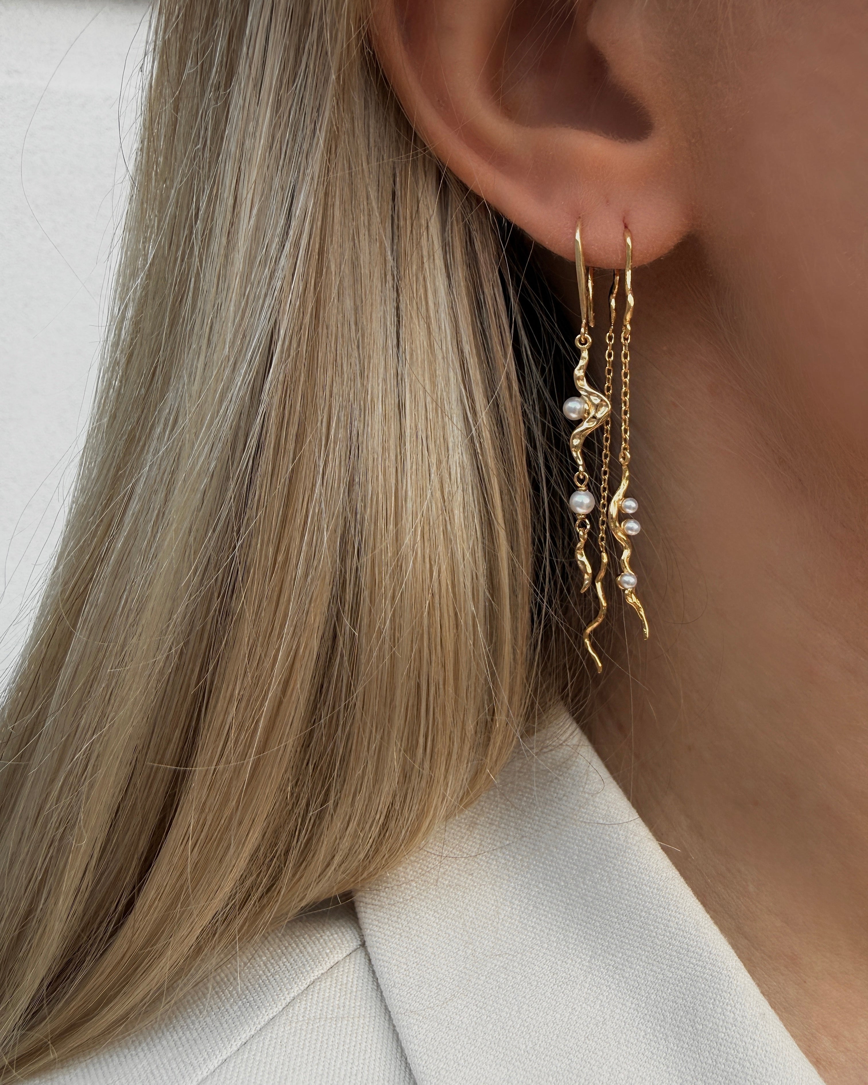 Melody Earrings have a light and wavy design with two small pearls placed between organic links. The moving shape gives an elegant fall and a feminine expression - a harmonious style from the Siren collection.