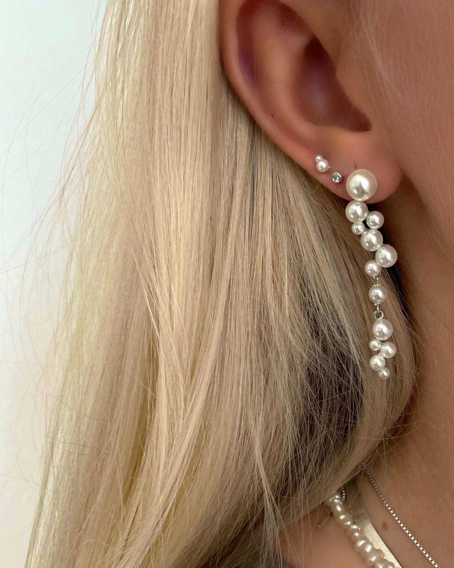 Amun Earrings is a beautiful, unique and eye-catching earring that will spice up any outfit. The earring is longer than the traditional earrings and is filled with clusters of pearls that hang like pearl pendants. Elegant and full, these earrings will add a subtle and elegant detail to any outfit. They are perfect for special occasions or just to add a unique and eye-catching element to everyday wear. Amun is part of our Cloud Collection, which is inspired by the white, puffy and fairy-tale clouds in the sky.