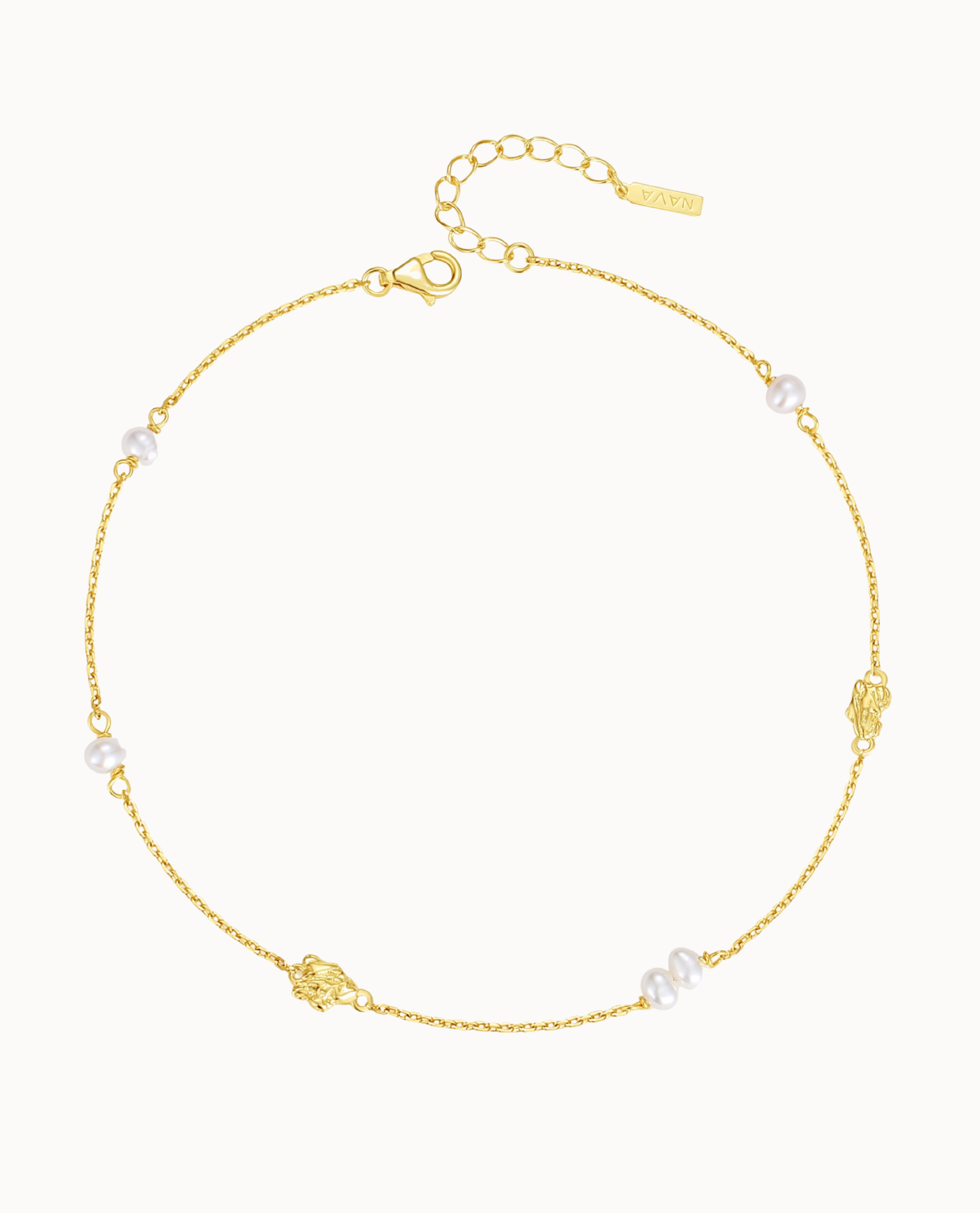 The Asita Anklet is a beautiful ankle chain with delicate details and an organic structure in its two pendants. It is decorated with five small freshwater pearls that add a fine touch of elegance. The ankle chain is nice because it adds a feminine and seductive element to your outfit, while giving a sense of lightness and movement to your walk. Part of the Elements Collection, inspired by the four elements, this anklet elegantly represents the beauty and harmony of nature.