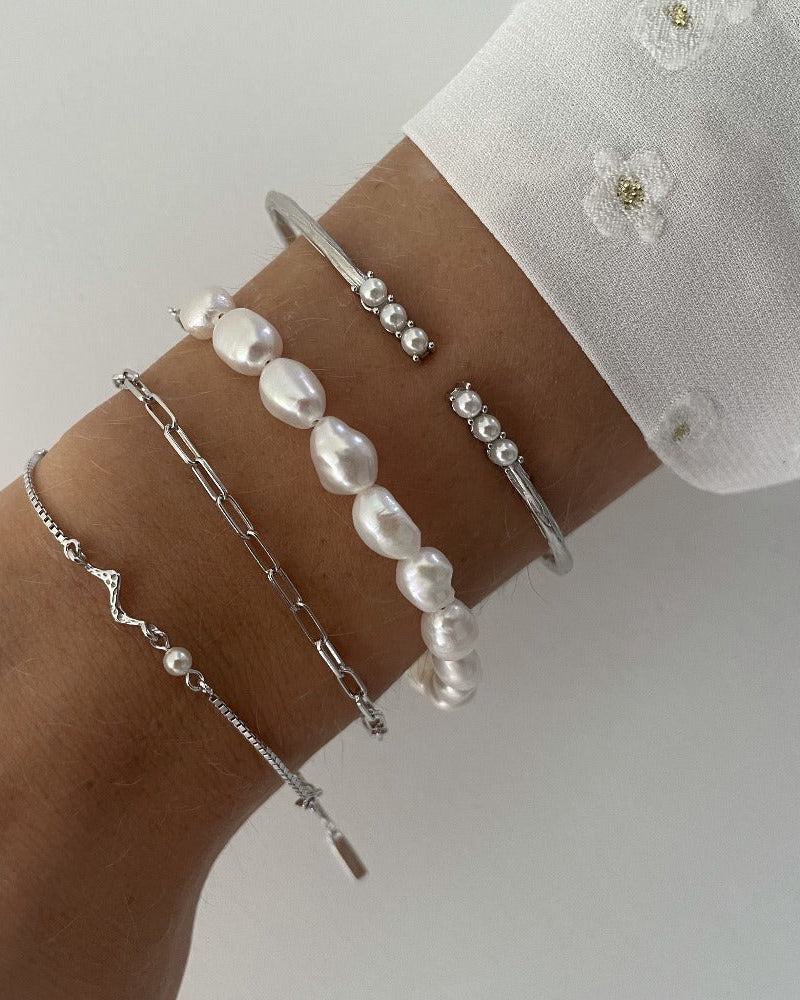 Our enchanting Kaito Bracelet is a simple bracelet with small undulating structures and a single freshwater pearl. The bracelet stands alone beautifully, but can also be easily combined with other bracelets to create a more stacked look. The bracelet is adjustable in three lengths, so that it can be adapted to your wrist. Kaito Bracelet is part of our Mermaid collection, which is inspired by the magical, playful and enchanting tale of mermaids.