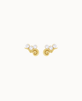Sidra Petite Studs are a pair of charming little stud earrings that add a nice touch to any style. Inspired by the waves, these earrings are adorned with three small shell pearls at the top, creating a subtle and elegant look.