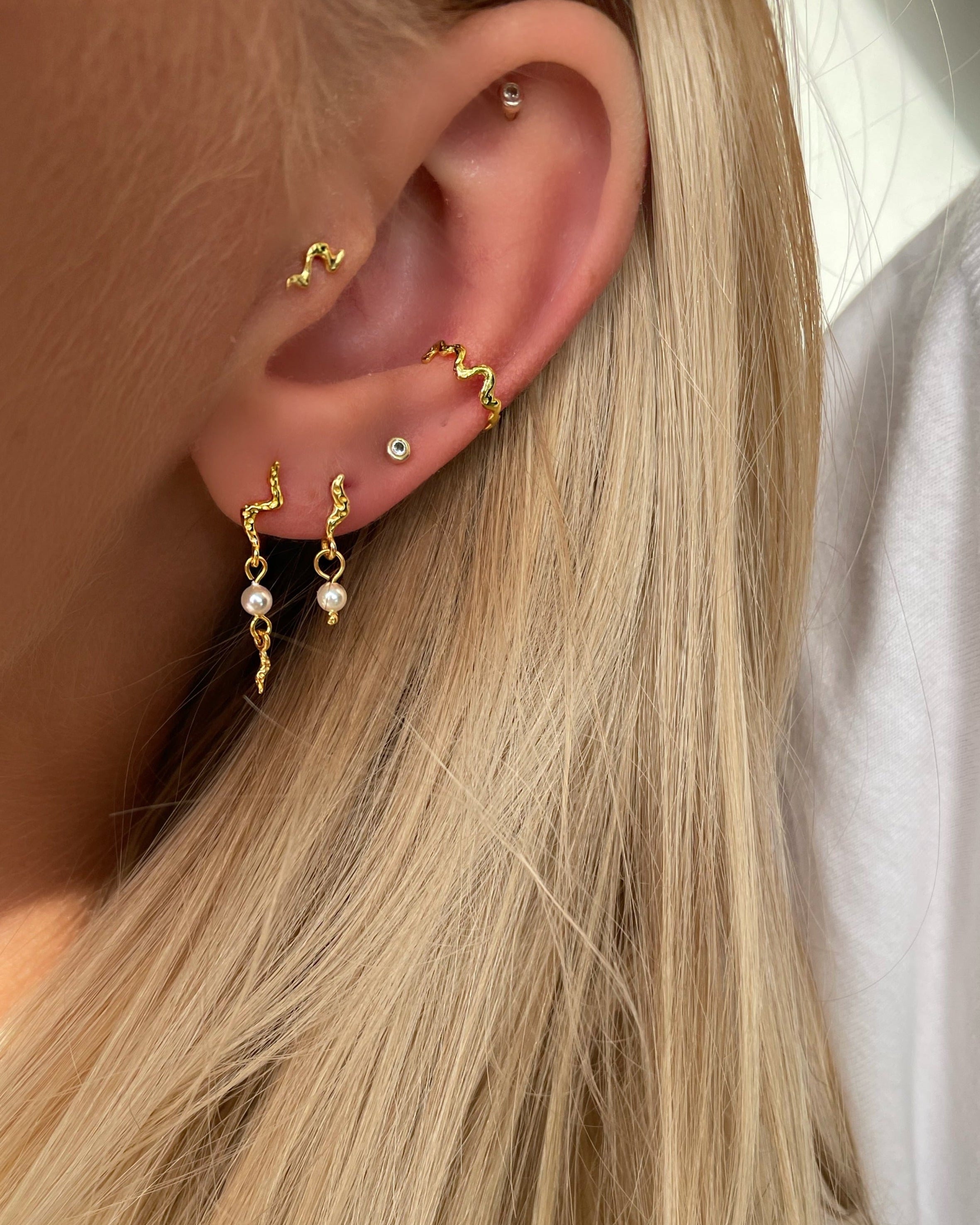 The Amara Ear Cuff is a beautiful style that undulates around the ear and creates a raw and feminine expression. The ear cuff has a hammered look and therefore creates a nice organic look. It creates the illusion of several holes/piercings in the ear. You therefore do not need to have a hole in your ear to use ear cuffs . Style it with your other favorite earrings to create a stacked look. The Amara Ear Cuff is part of the Reef Collection, which is inspired by the beautiful coral reef.