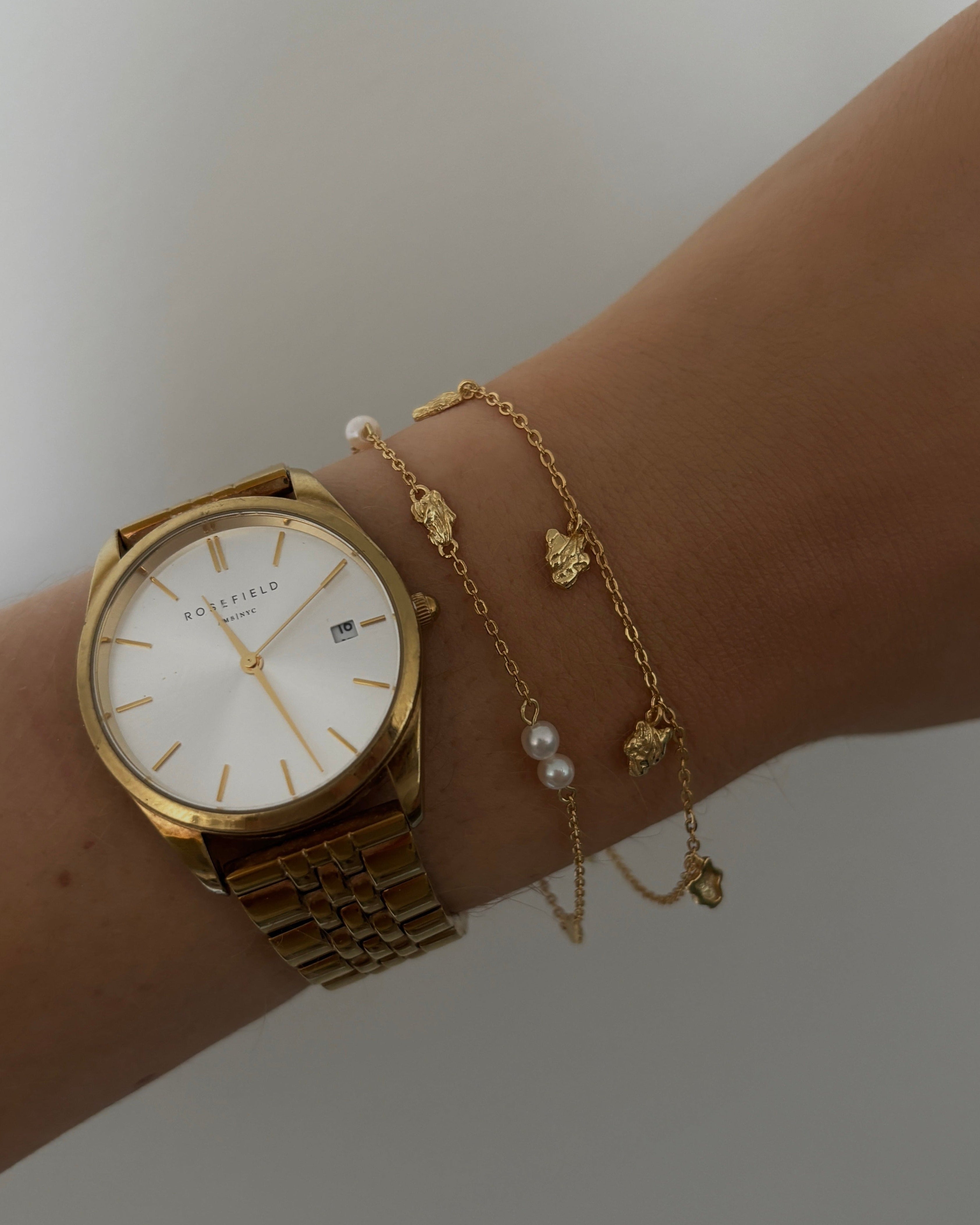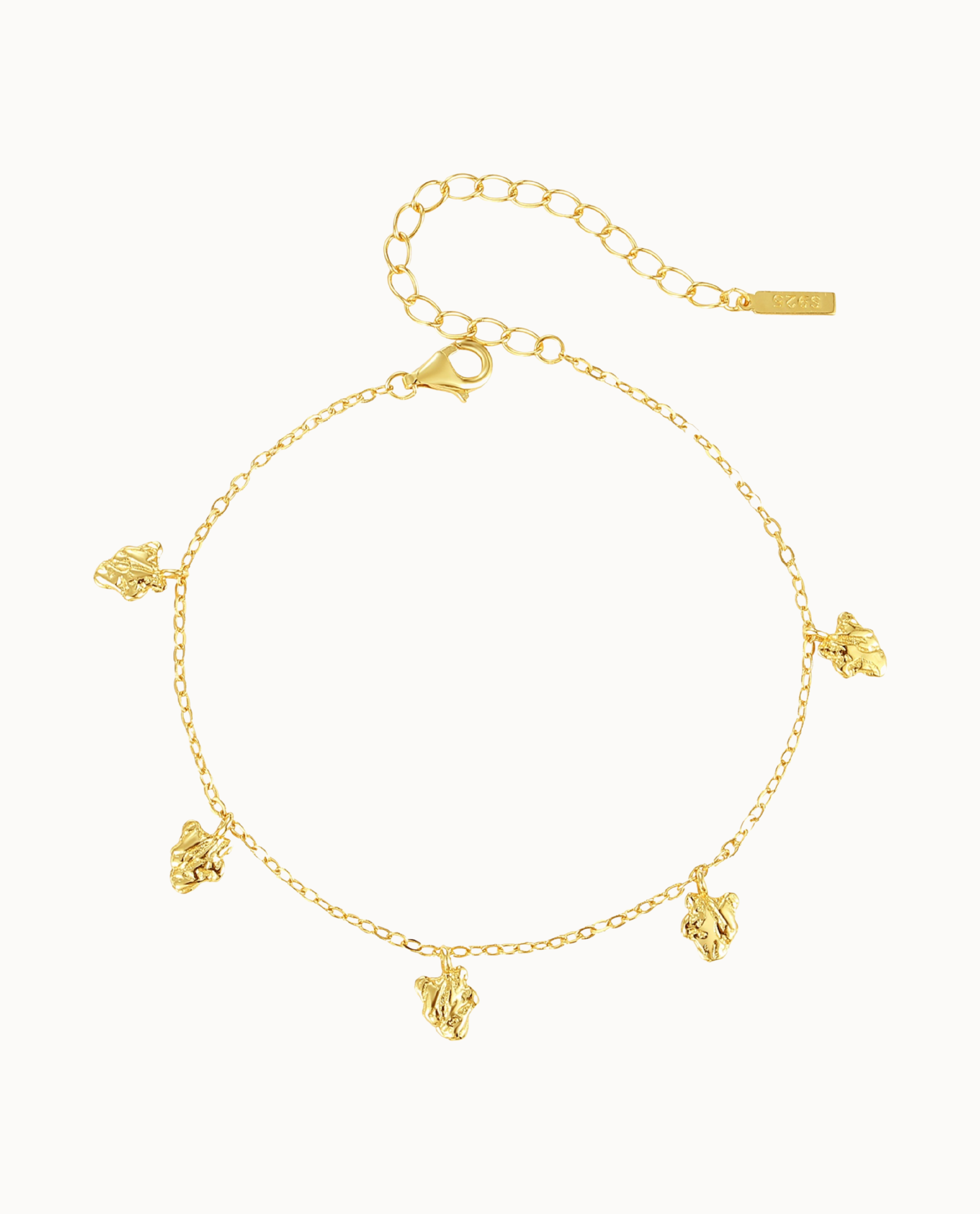 The Idalia Bracelet is a beautiful and elegant bracelet with five small pendants that dangle charmingly and have an organic structure. The bracelet is part of the Elements Collection, which is inspired by the four elements. With its delicate design, it adds a timeless and feminine touch to any outfit, making it the perfect accessory for any occasion.