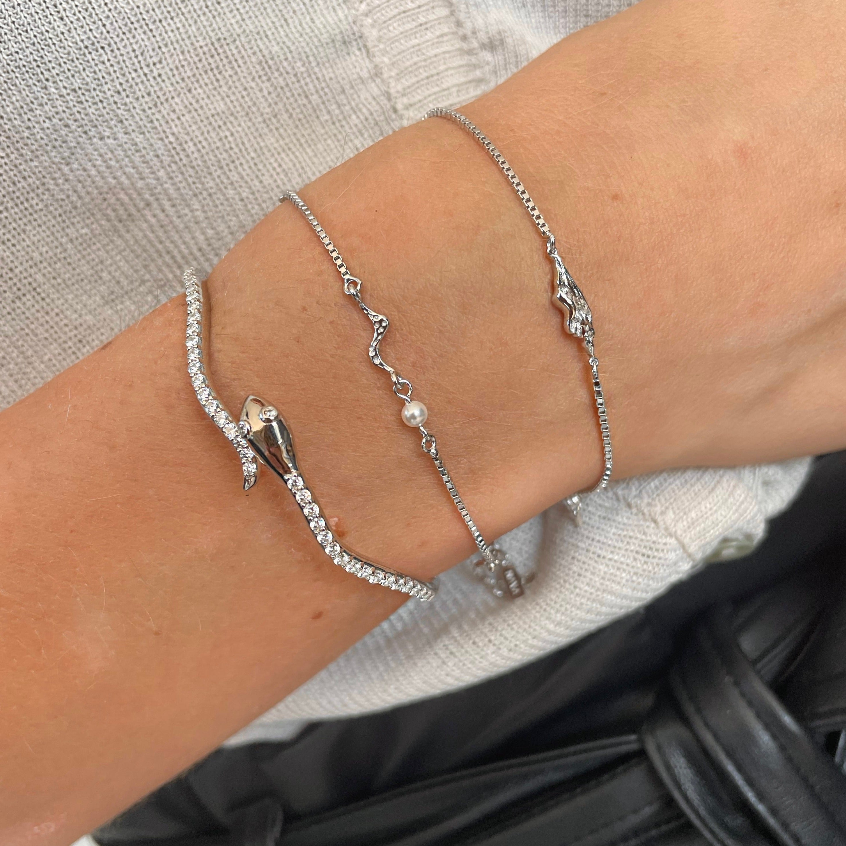 Our fine Kigoi Bracelet is a simple, beautiful bracelet with beautiful details. The bracelet has 2 pendants, one larger and one smaller, both shaped like the tail of the koi carp. Kigoi Bracelet is part of our Koi collection, which is inspired by the beautiful and colorful koi carp. The bracelet can easily be styled alone, but is also beautiful to mix with other bracelets due to its simplicity.