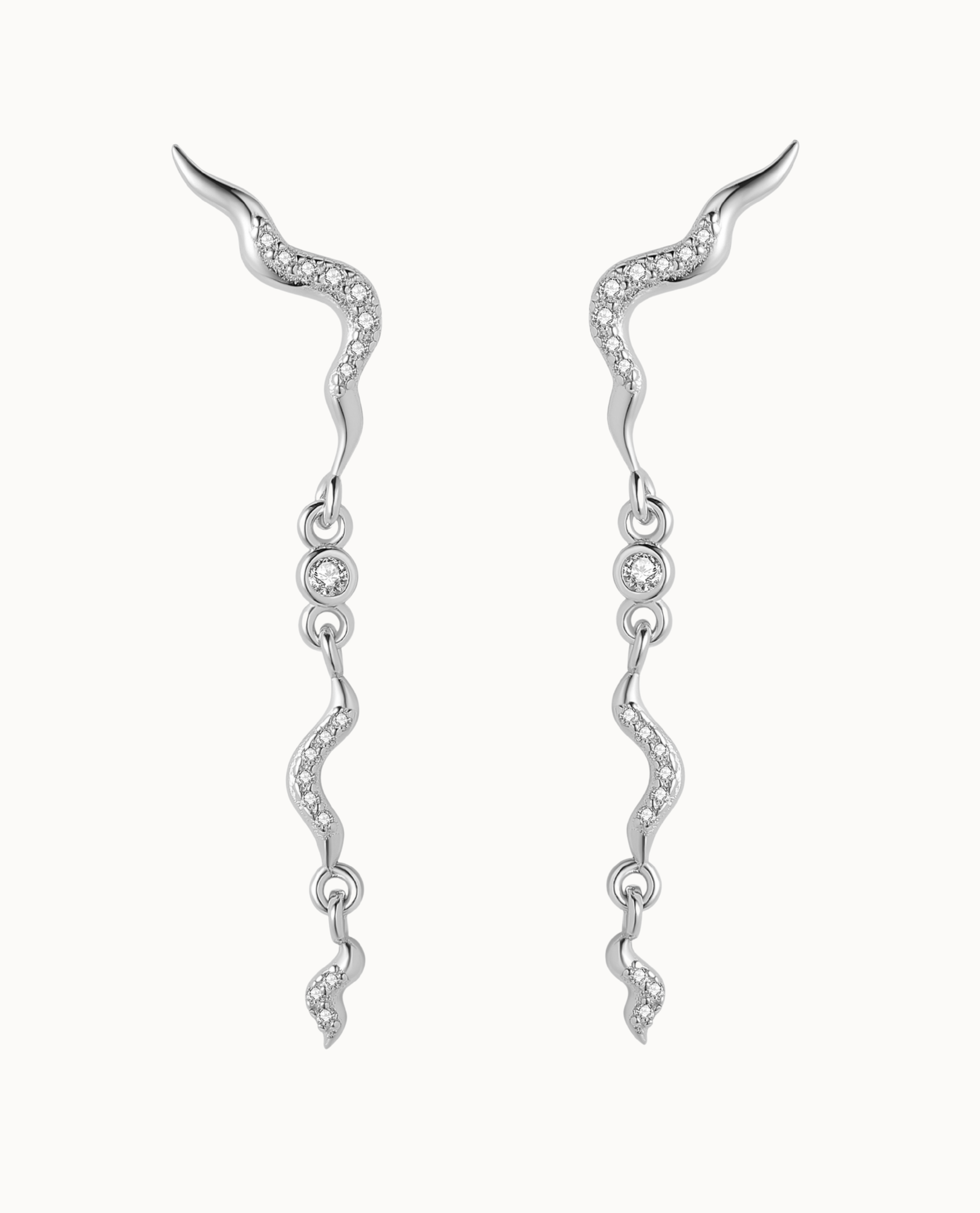 Our beautiful Venus Earring are a larger earring with unique details. The earring is a slightly longer earring and at the same time winds beautifully up the earlobe, which creates an enchanting look. Venus is filled with clear cubic zirconias in each pendant and has a single in the center as well. The earring is part of our Stargazing collection, which is inspired by the many twinkling stars of the night sky.