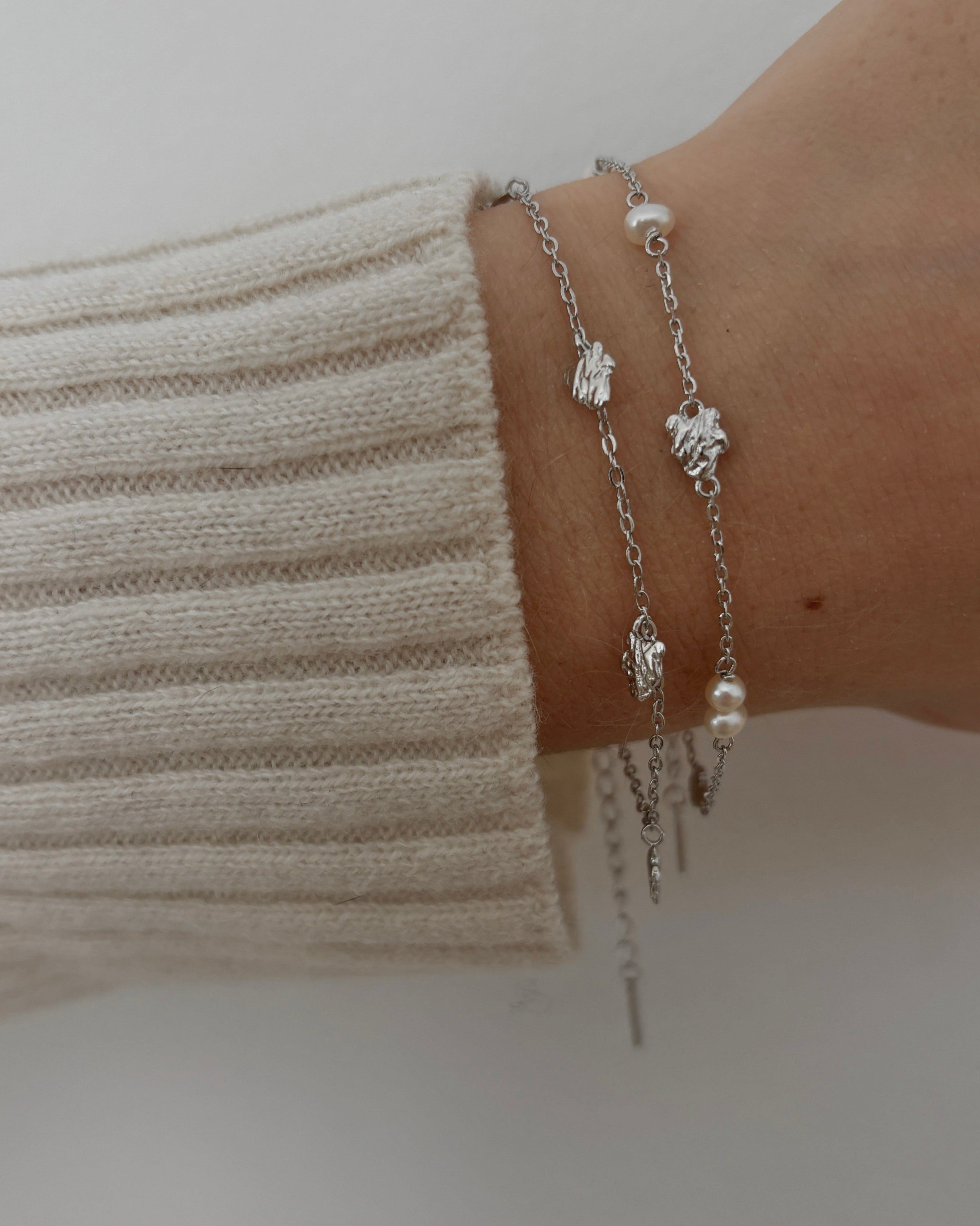 Capture the essence of nature's beauty with the Zeru Bracelet. This delicate bracelet, part of the Elements Collection, features five small freshwater pearls and two organic pendants. A beautiful tribute to the four elements that add elegance and earthy charm to any look.