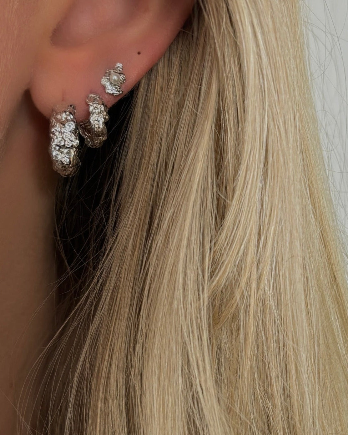 Tuuli Earrings er et par chunky hoops fra vores Elements Collection. Øreringene er inspireret af jorden og det kommer til udtryk i deres organiske struktur. Øreringene er perfekte at matche med andre hoops og tilføjer et naturligt strejf til din stil.