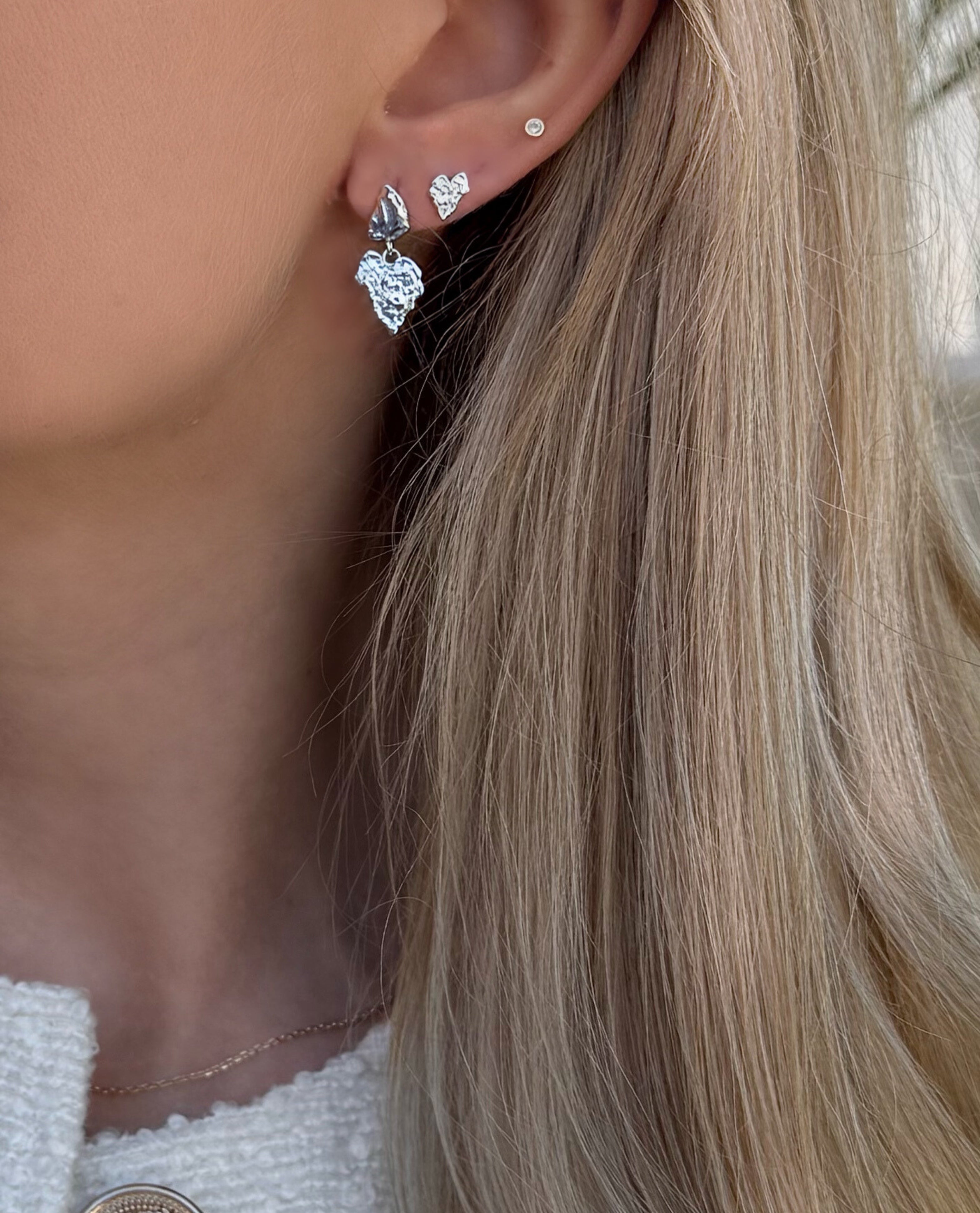 Cove Petite Studs er små, hjerteformede ørestikker med en rå, struktureret overflade, inspireret af kystens sten og klipper. Deres ujævne form og matte glans giver dem et naturligt, upoleret udtryk – som små skatte fundet i vandkanten. Perfekte til hverdagsbrug eller som et diskret touch i et lag-på-lag look.