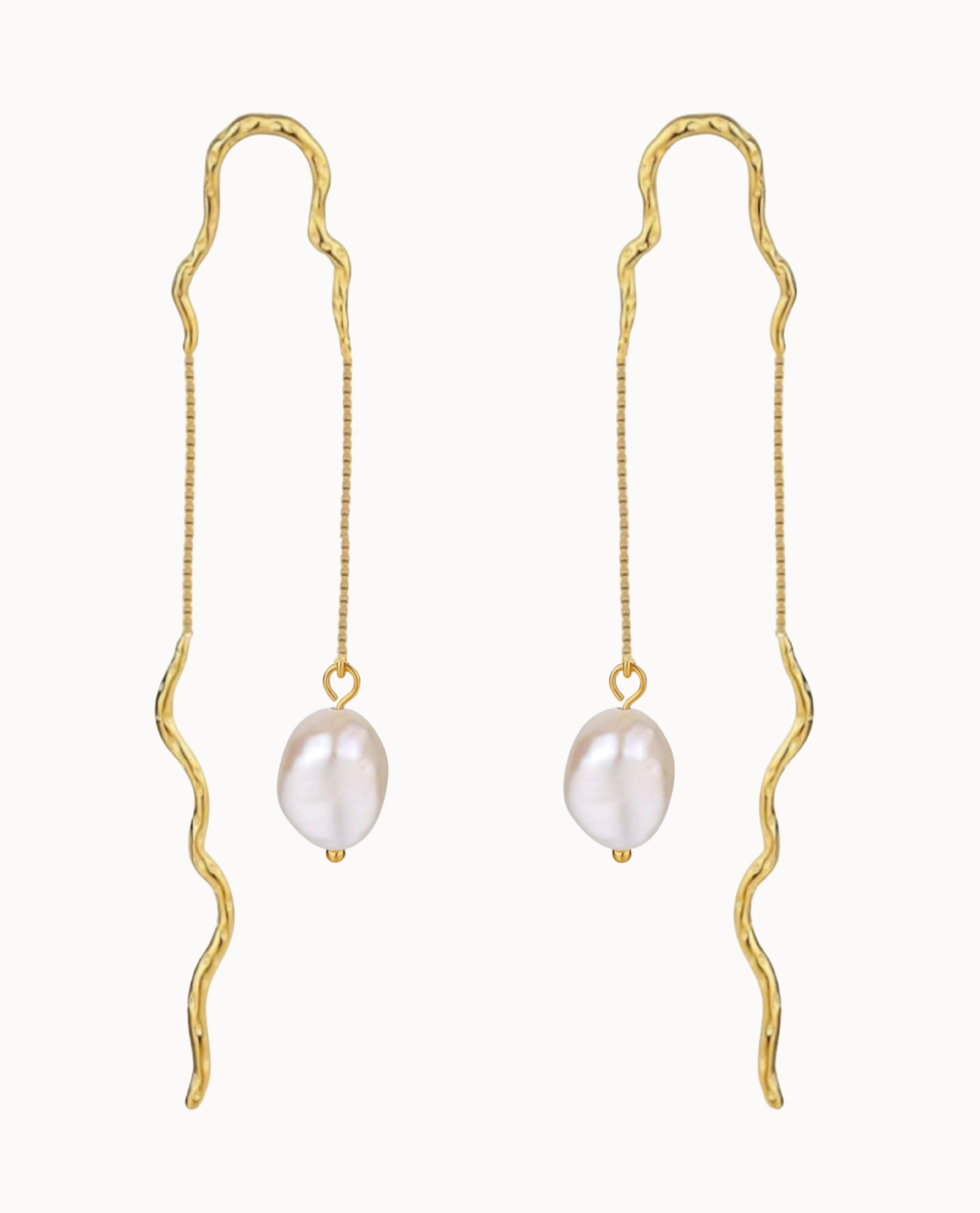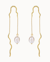 Vores smukke Raja Earrings er en længere øretråd med fine fortryllende detaljer. Øreringen bølger og snoer sig smukt igennem øret mens den skaber et magisk udtryk. Raja har en større irregulær ferskvandsperle, der gør øreringen elegant og unik. Raja Earrings er en del af Reef Kollektionen, som er inspireret af det smukke koralrev.