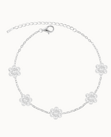 Amarylia Anklet er en smuk og delikat ankelkæde, der er fyldt med fortryllende detaljer. Den er udsmykket med fine blomster lavet af skinnende skalperler, der omgiver anklen med en subtil elegance. Denne ankelkæde er en hjertevarmende del af vores Tidal Blossom-kollektion, som trækker inspiration fra havets dybder og opblomstringens skønhed. Med Amarylia Anklet kan du bære en skønhed, der hylder både havet og blomstrene, og lade dig fordybe i den magi, som kollektionen har at tilbyde.
