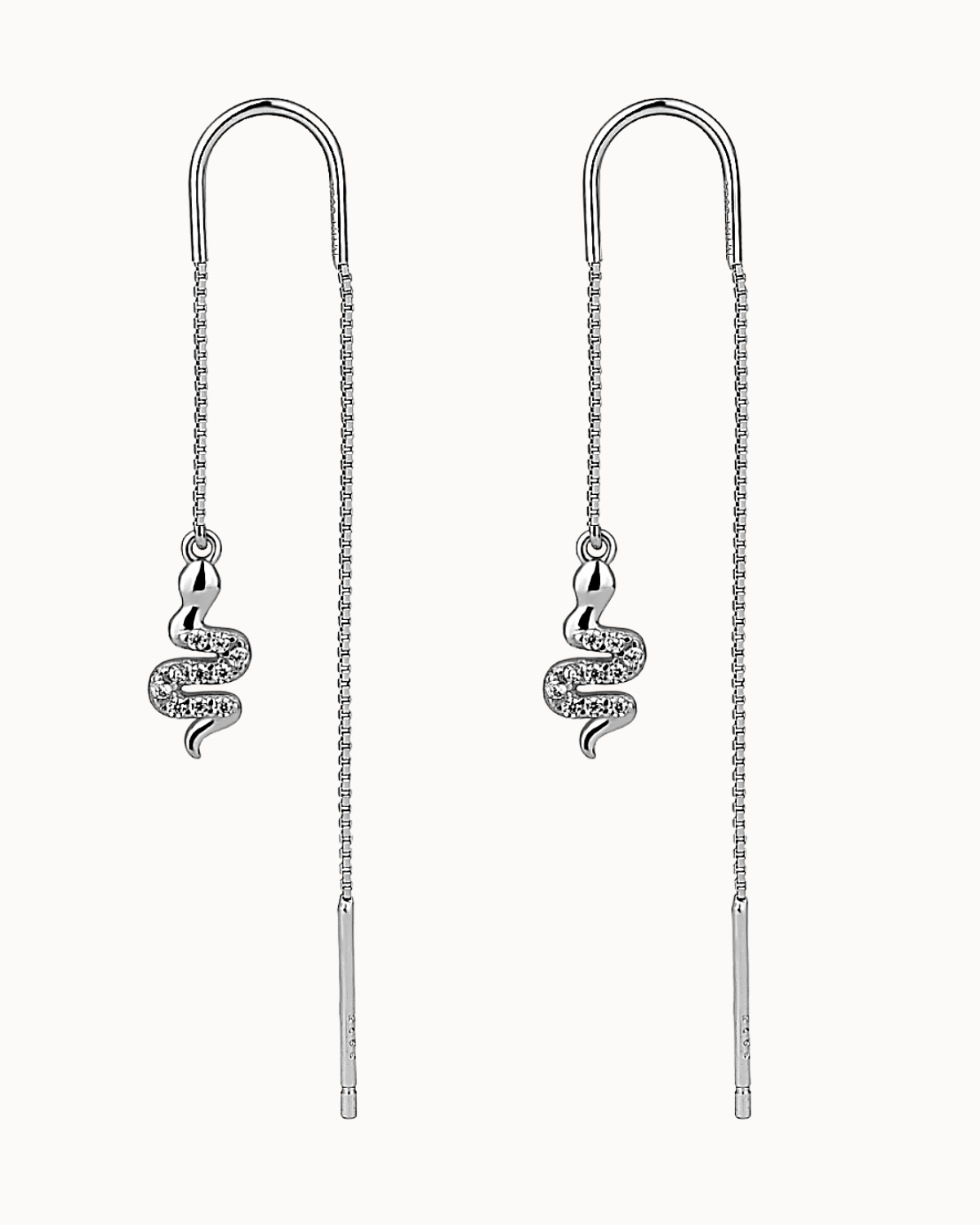 Boa Ear Threads er smukke fortryllende øretråde med små slangevedhæng fyldt med klare kubiske zirkoner. Øretråden er det perfekte mix af rå og feminin og kan både styles op og ned, så det passer til netop dit look.