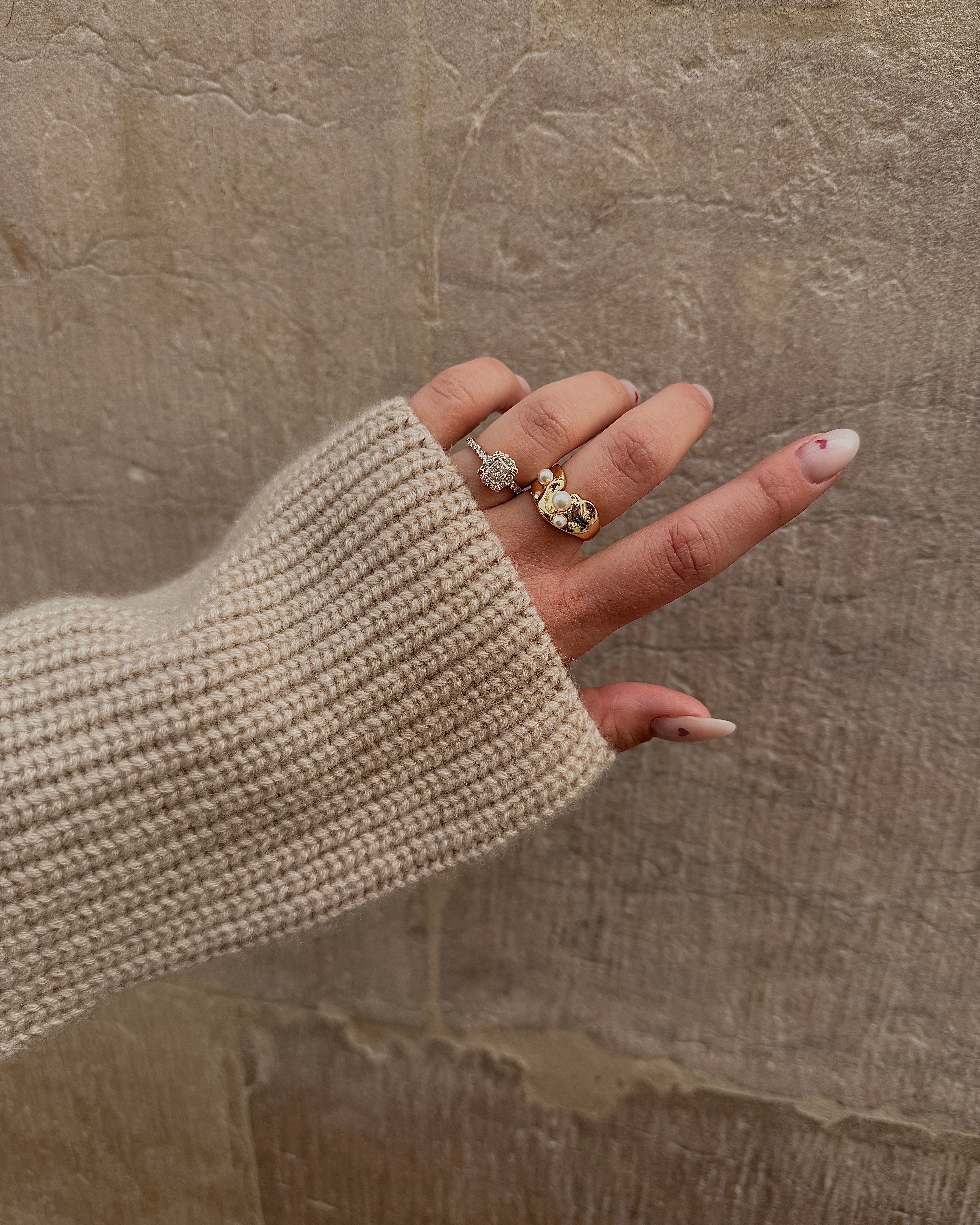 Adella Ring har et blødt, bølgende design, der omfavner tre perler i forskellige størrelser. Kombinationen af organiske former og glatte overflader skaber et harmonisk og elegant udtryk, som er kendetegnende for Siren kollektionen.