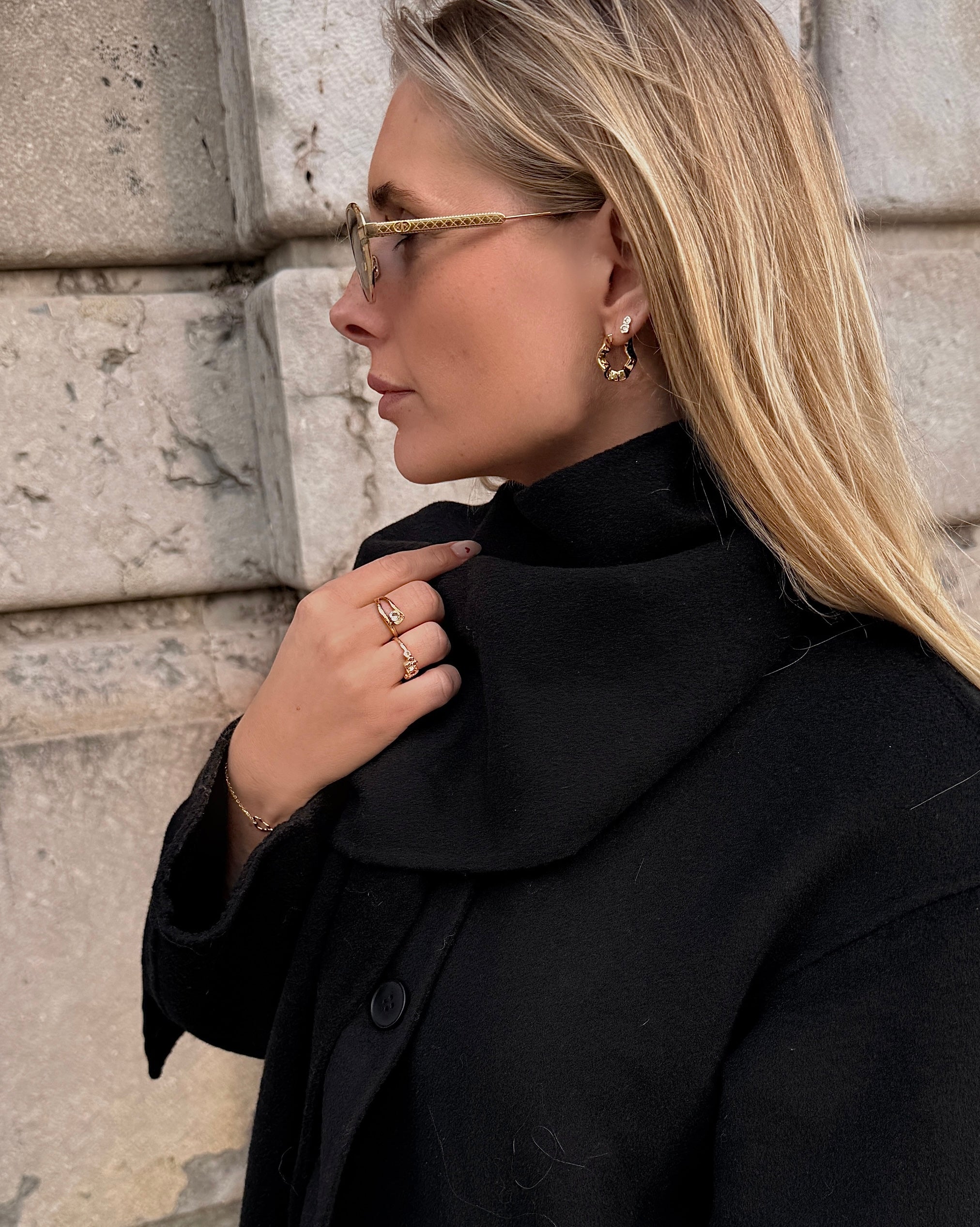 Adriana Earrings har en markant, snoet hoop-form med bløde kurver og et skulpturelt udtryk. Designet leger med bevægelse og lys, hvilket giver et moderne twist til den klassiske hoop. En stilfuld tilføjelse til Siren kollektionen.