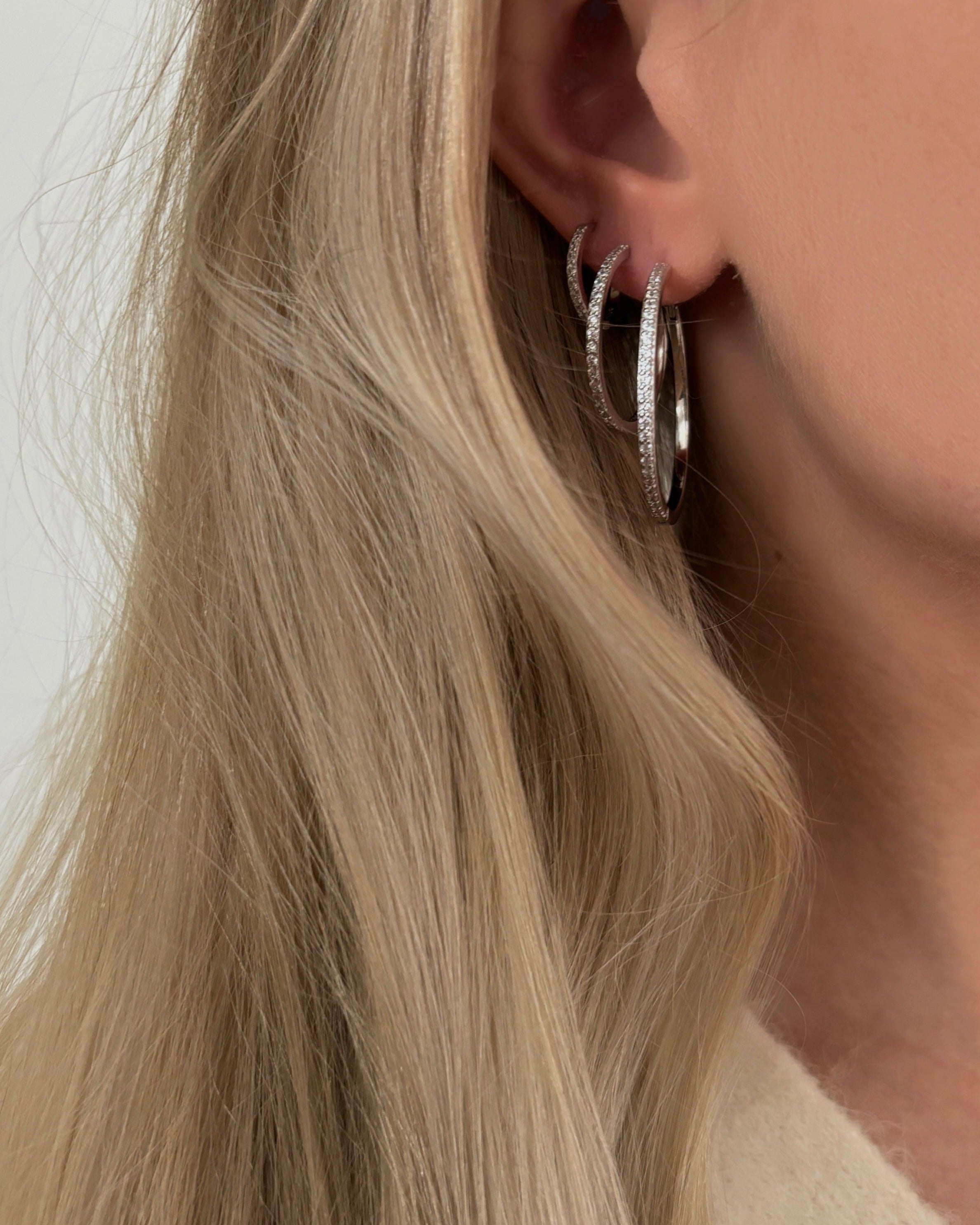 Aquila Earrings S er en klassisk creol fyldt med klare kubiske zirkoner. Øreringen er perfekt til dig, som kan lide det mere simple look, eller dig som ønsker en stacking af creoler. Brug Aquila S sammen med de andre Aquila øreringe i størrelserne XS, M eller L. Øreringen er en del af vores Stargazing kollektion, som er inspireret af nattehimlens mange funklende stjerner.