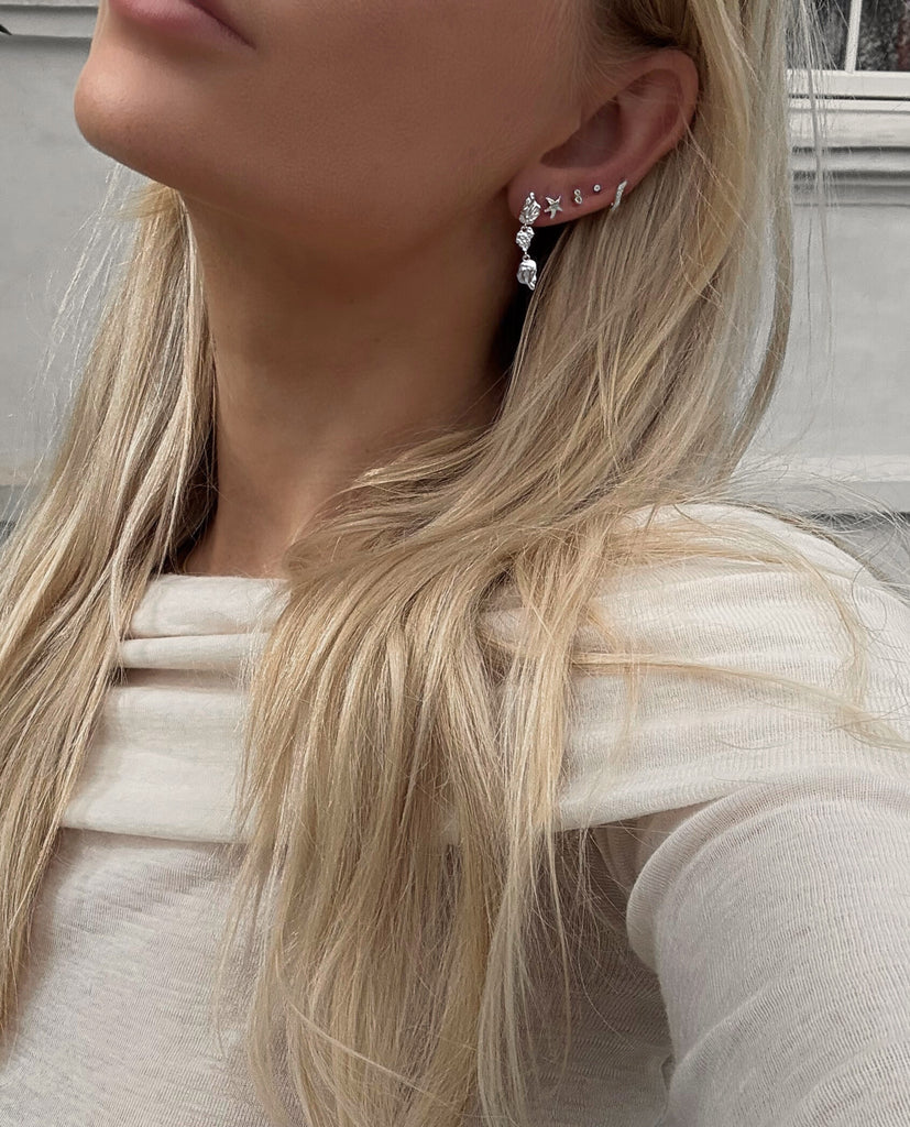 Øreringene er en del af Coastal Dreams Kollektionen, der er en hyldest til kystens vilde og uforudsigelige skønhed – hvor bølger møder klipper, og sand formes af vinden. Kollektionen fanger den rå elegance i havets bevægelser og de skatte, tidevandet efterlader.