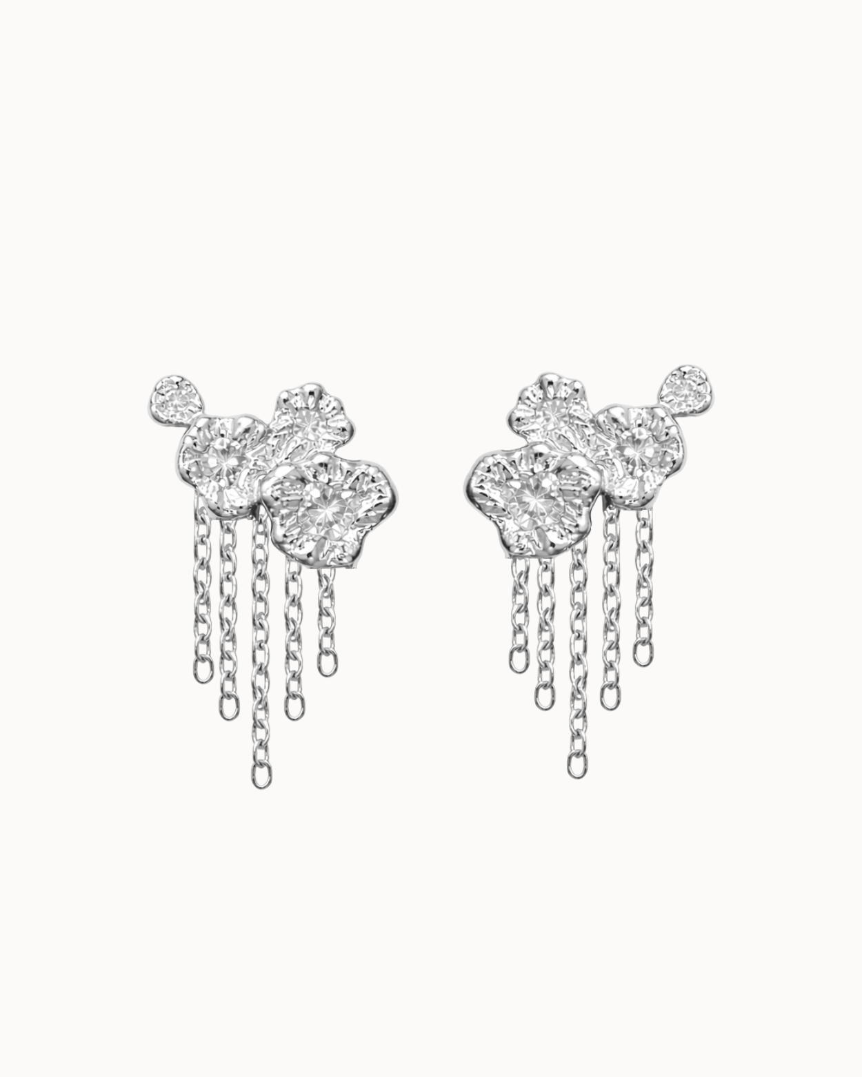 Dione Earrings er en elegant ørestik med funklende kubiske zirkoner og fine kædedetaljer, der falder let under øret. Designet kombinerer et klassisk stud-look med et mere iøjnefaldende, bevægeligt udtryk, hvor de hængende elementer tilføjer både længde og et sofistikeret finish.