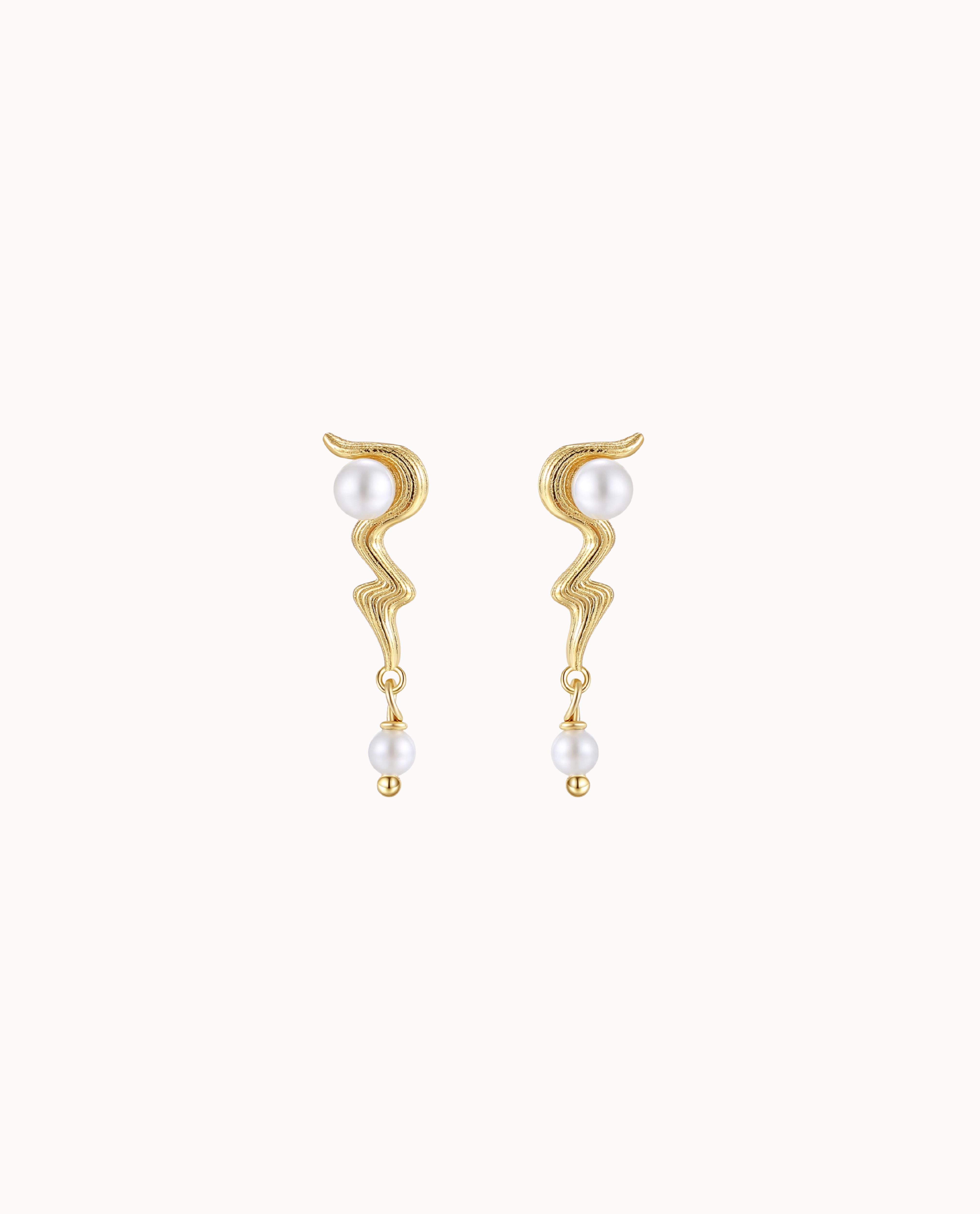 Drema Earrings er et par smukke ørestikker med fine skalperler og en skøn bølgestruktur, der fanger lyset på fortryllende vis. Perfekte til både hverdag og særlige lejligheder, tilføjer de et strejf af naturlig elegance til ethvert outfit.