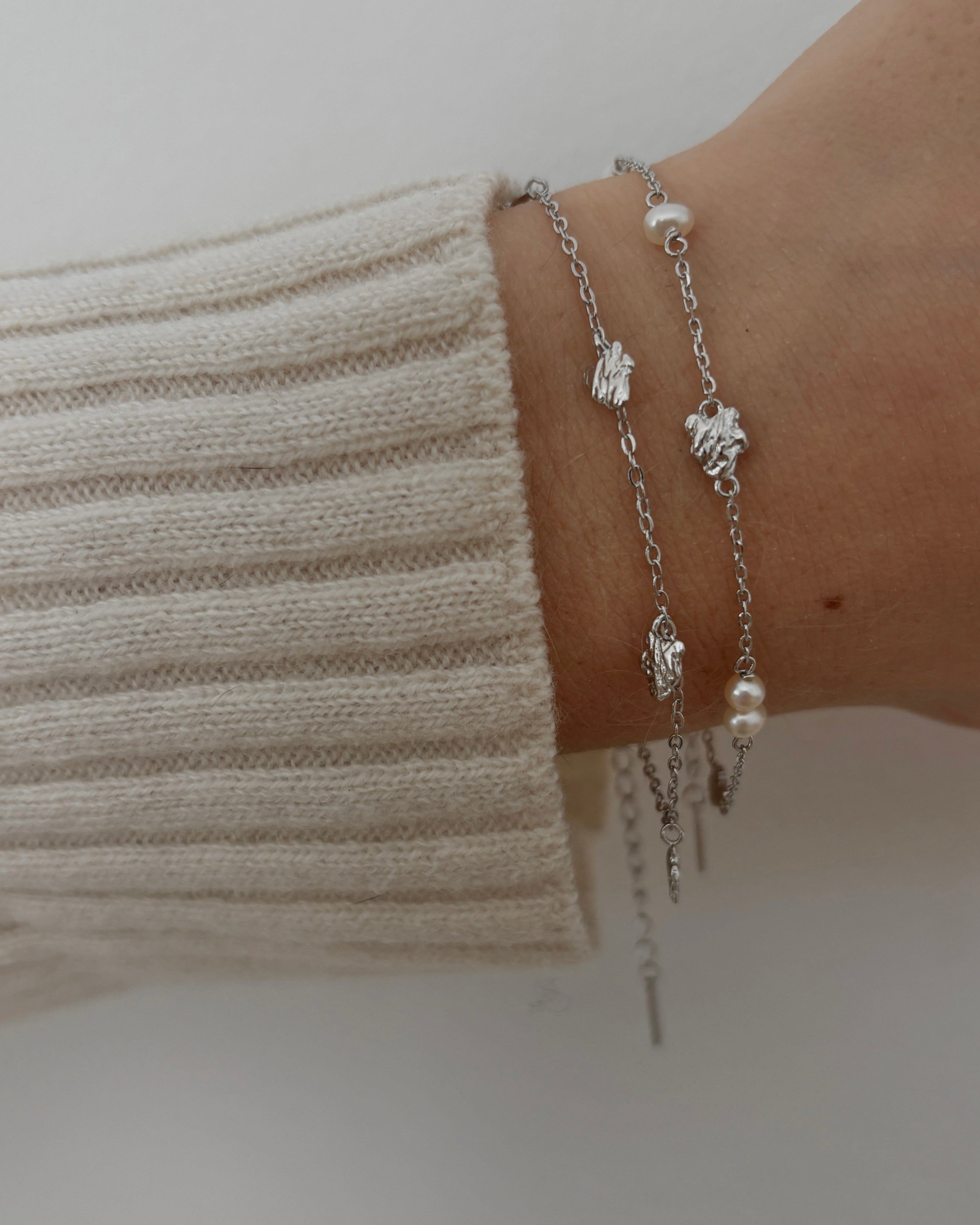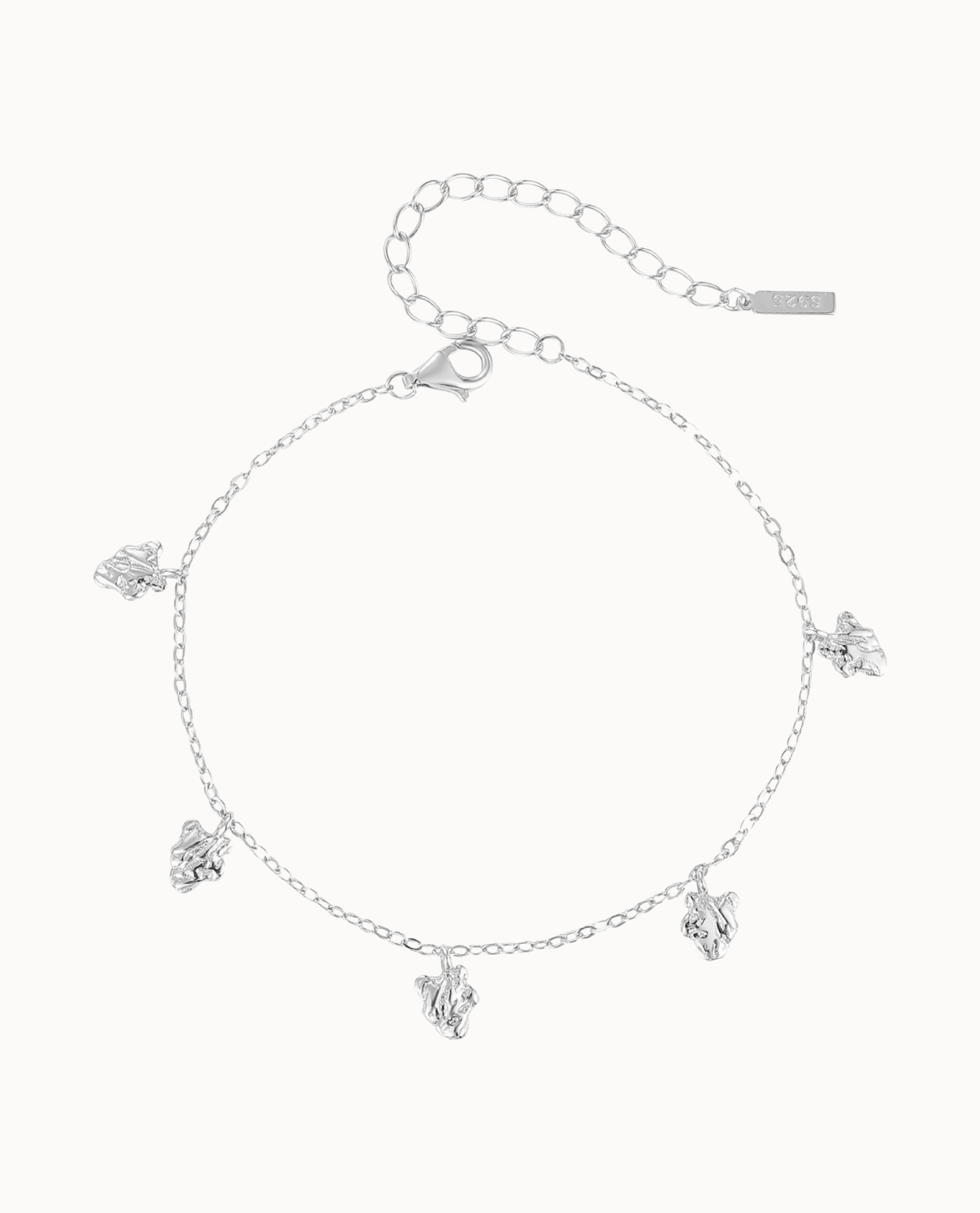 Idalia Bracelet er et smukt og elegant armbånd med fem små vedhæng, der dingler charmerende og har en organisk struktur. Armbåndet er en del af Elements Collection, der er inspireret af de fire elementer. Med sit delikate design tilføjer det et tidløst og feminint touch til ethvert outfit, hvilket gør det til det perfekte tilbehør til enhver lejlighed.