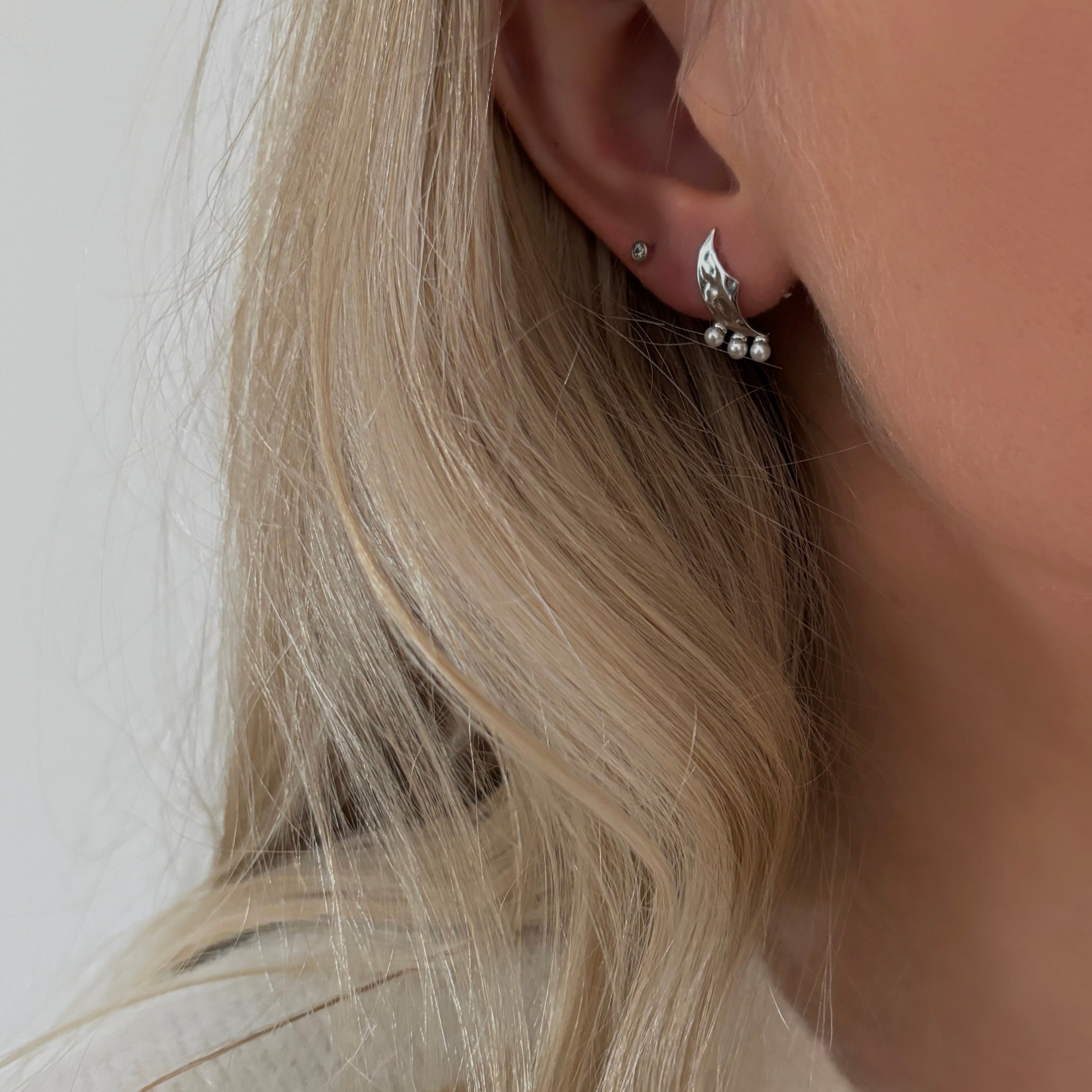 Luna Earrings er en magisk ørering formet som en måne, med tre små indsatte perler. Øreringen skaber et skønt og elegant look, og er god at bruge alene. Den kan også styles med andre øreringe, hvis du ønsker at skabe et mere stacked look. Luna er en del af vores Moonshine Kollektion, som er inspireret af den fortryllende og magiske nattehimmel.